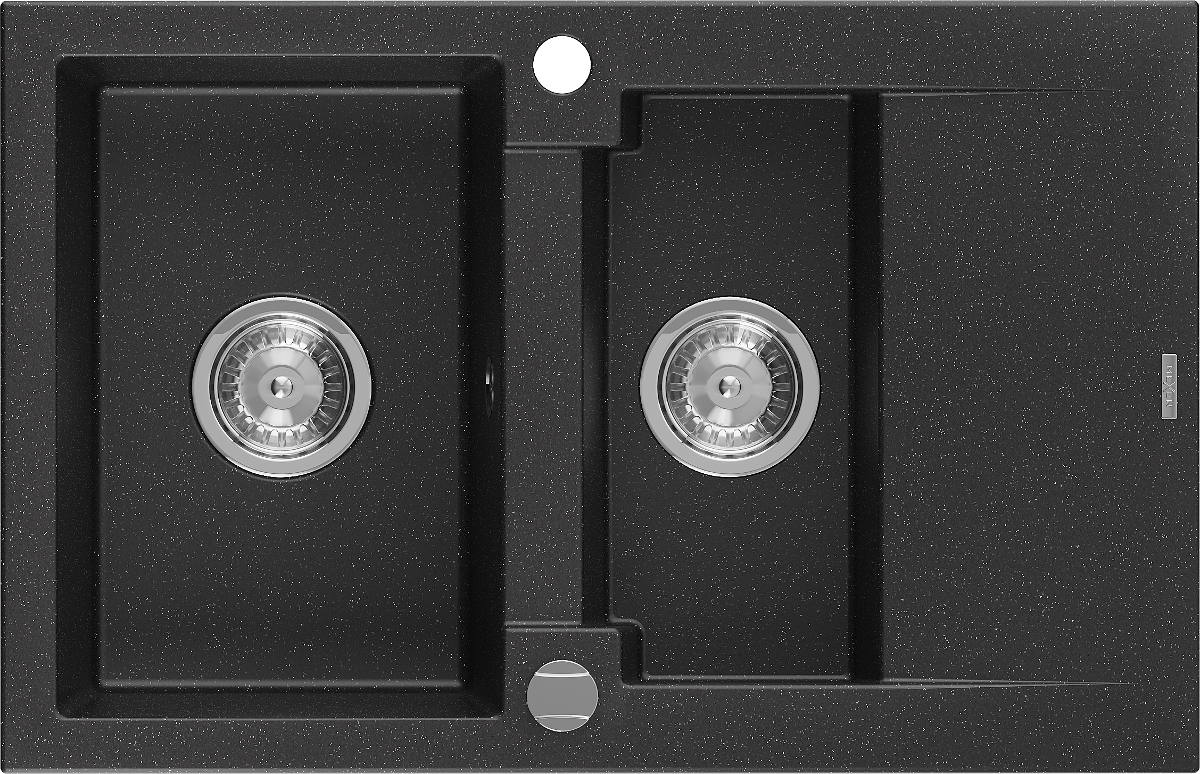 Mexen Gaspar granitový drez 1,5-komorový s odkvapkávačom 737 x 475 mm, čierny/strieborný metalik, sifón chróm - 6507731505-73