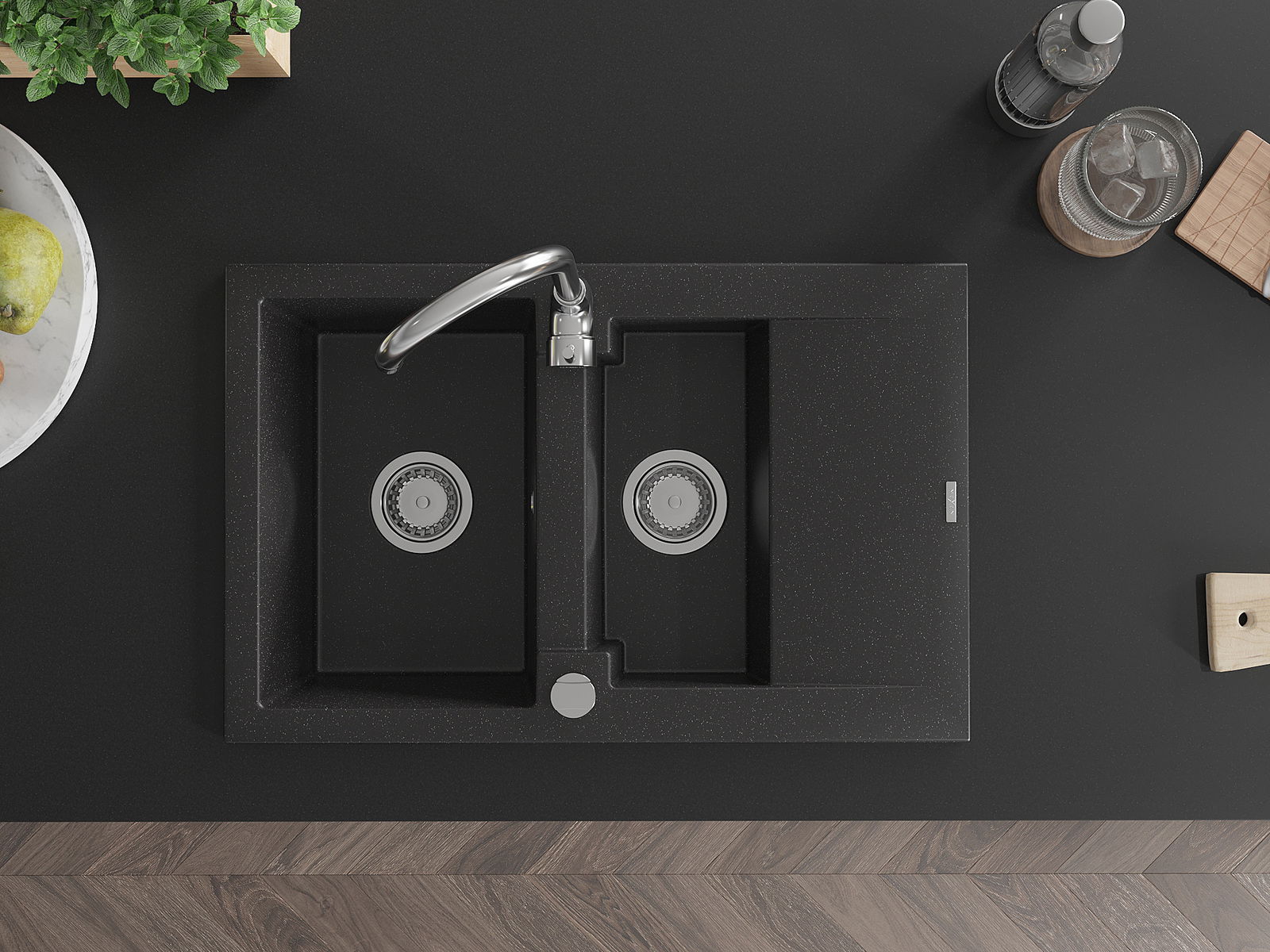 Povrch umývadla je odolný voči škvrnám a sfarbeniu, vďaka čomu sa ľahko čistí a zachováva si svoju farbu po dlhú dobu. Estetický a prakticky dopĺňajúci každú kuchyňu.