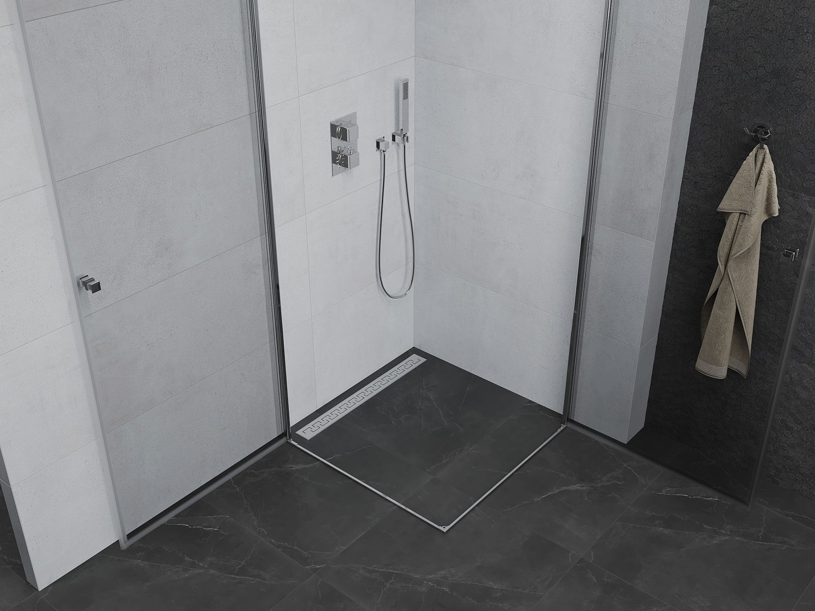 V závislosti od vašich potrieb je možné produkt namontovať na sprchovací podnos aj priamo na podlahe. Univerzálna montážna metóda vám umožňuje prispôsobiť produkt rôznym typom kúpeľní a nakonfigurovať priestor.