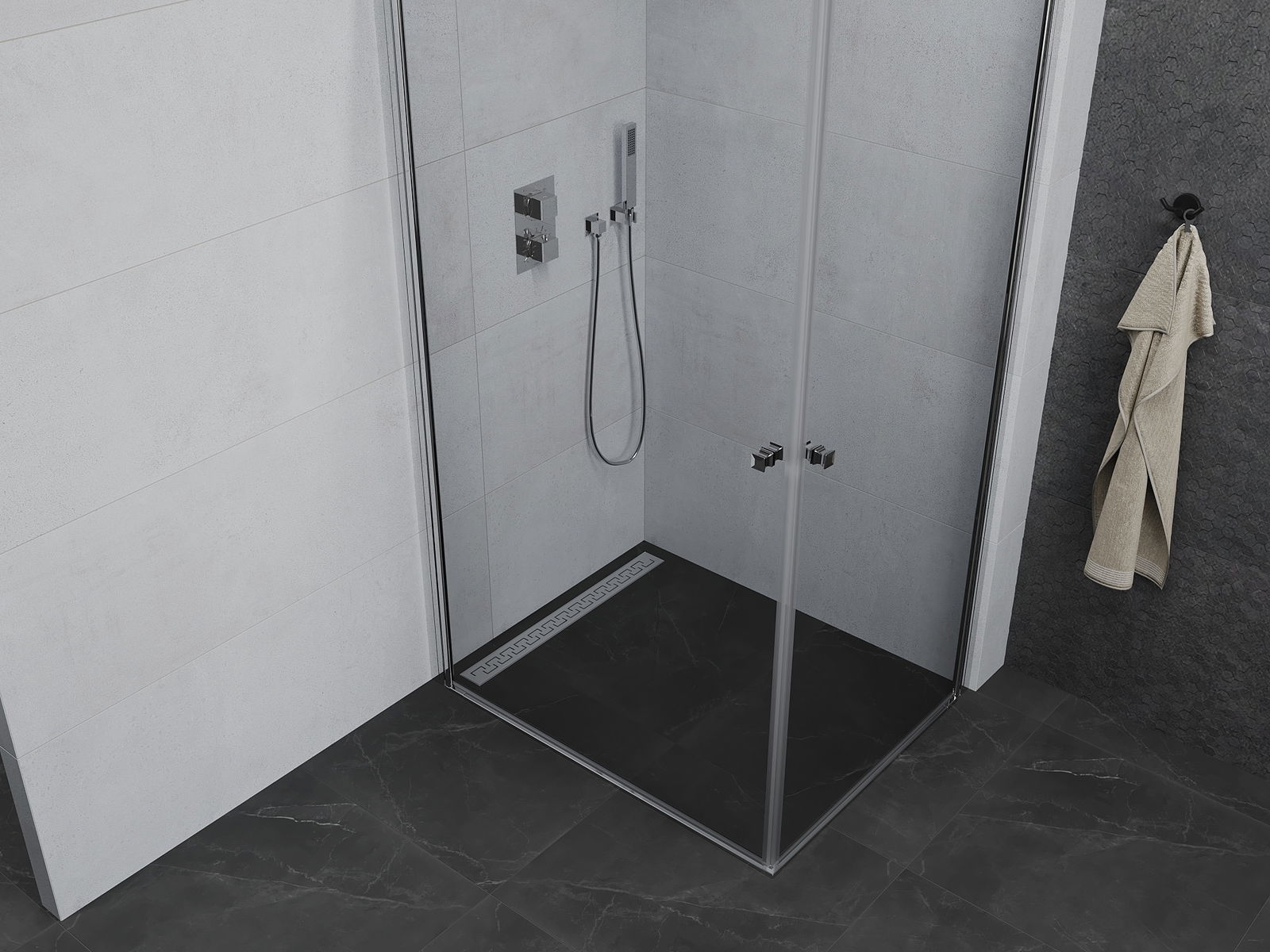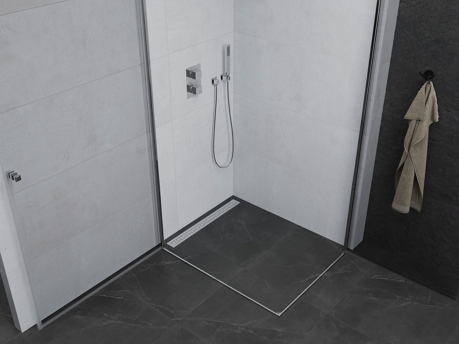 V závislosti od vašich potrieb je možné produkt namontovať na sprchovací podnos aj priamo na podlahe. Univerzálna montážna metóda vám umožňuje prispôsobiť produkt rôznym typom kúpeľní a nakonfigurovať priestor.