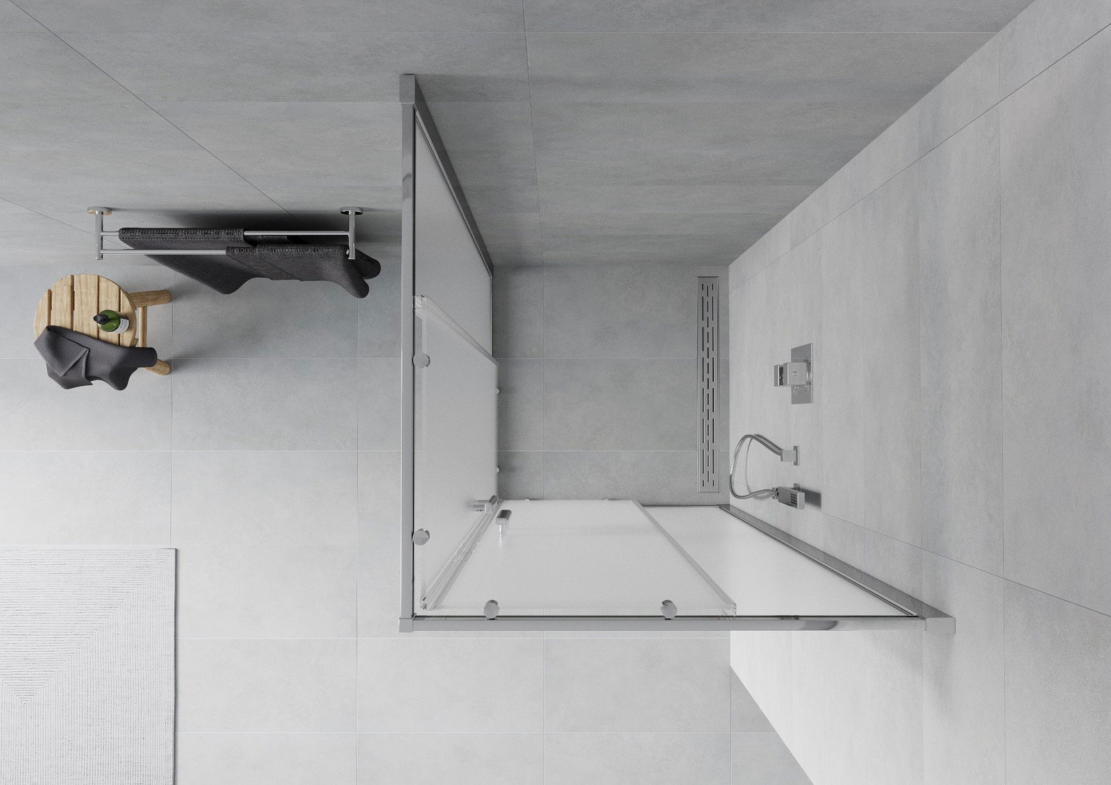 V závislosti od vašich potrieb je možné produkt namontovať na sprchovací podnos aj priamo na podlahe. Univerzálna montážna metóda vám umožňuje prispôsobiť produkt rôznym typom kúpeľní a nakonfigurovať priestor.