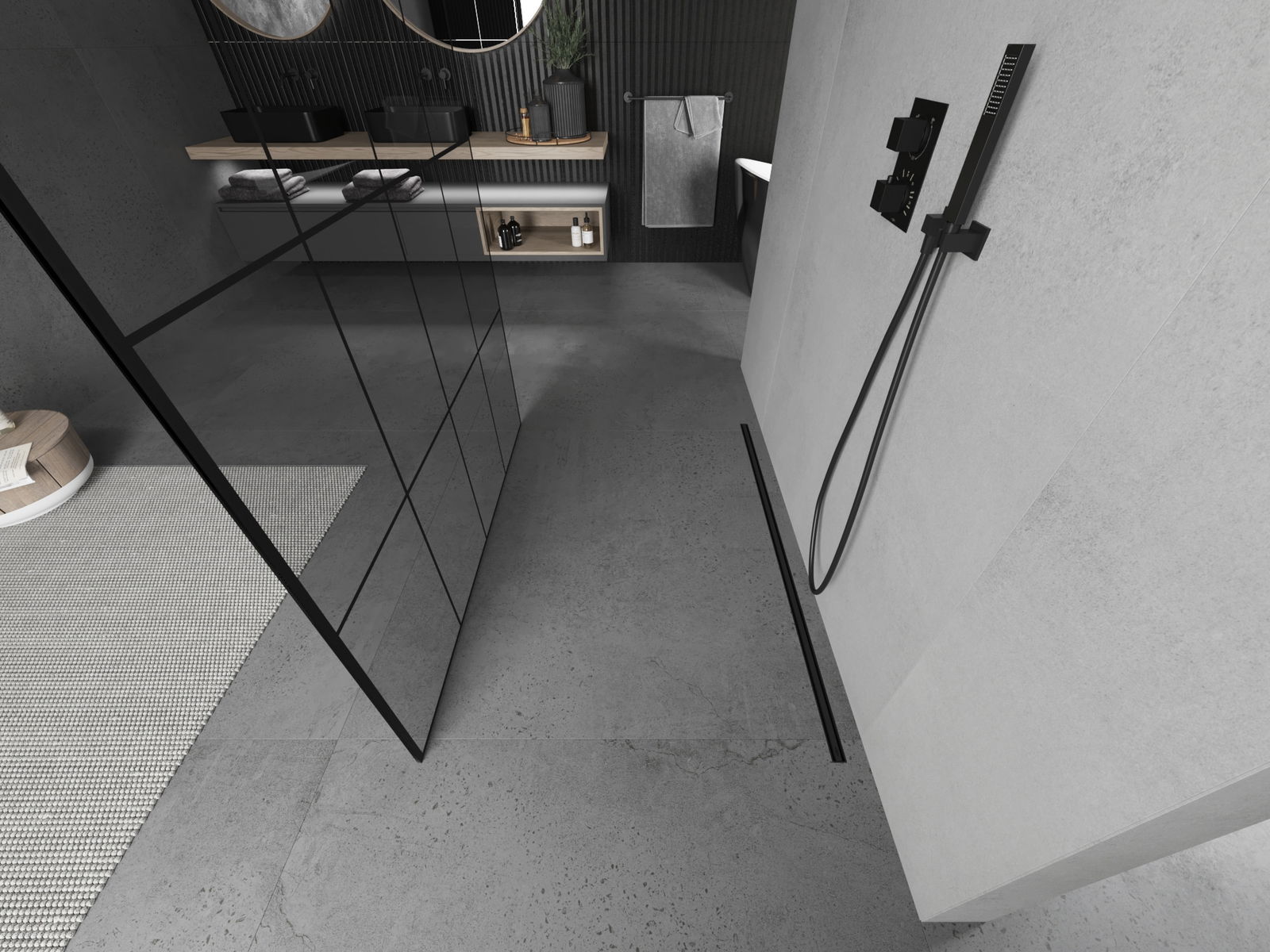 Mexen Kioto volne stojaca sprchová stena 150 x 200 cm, čierna mriežka 8 mm, čierna - 800-150-002-70-77