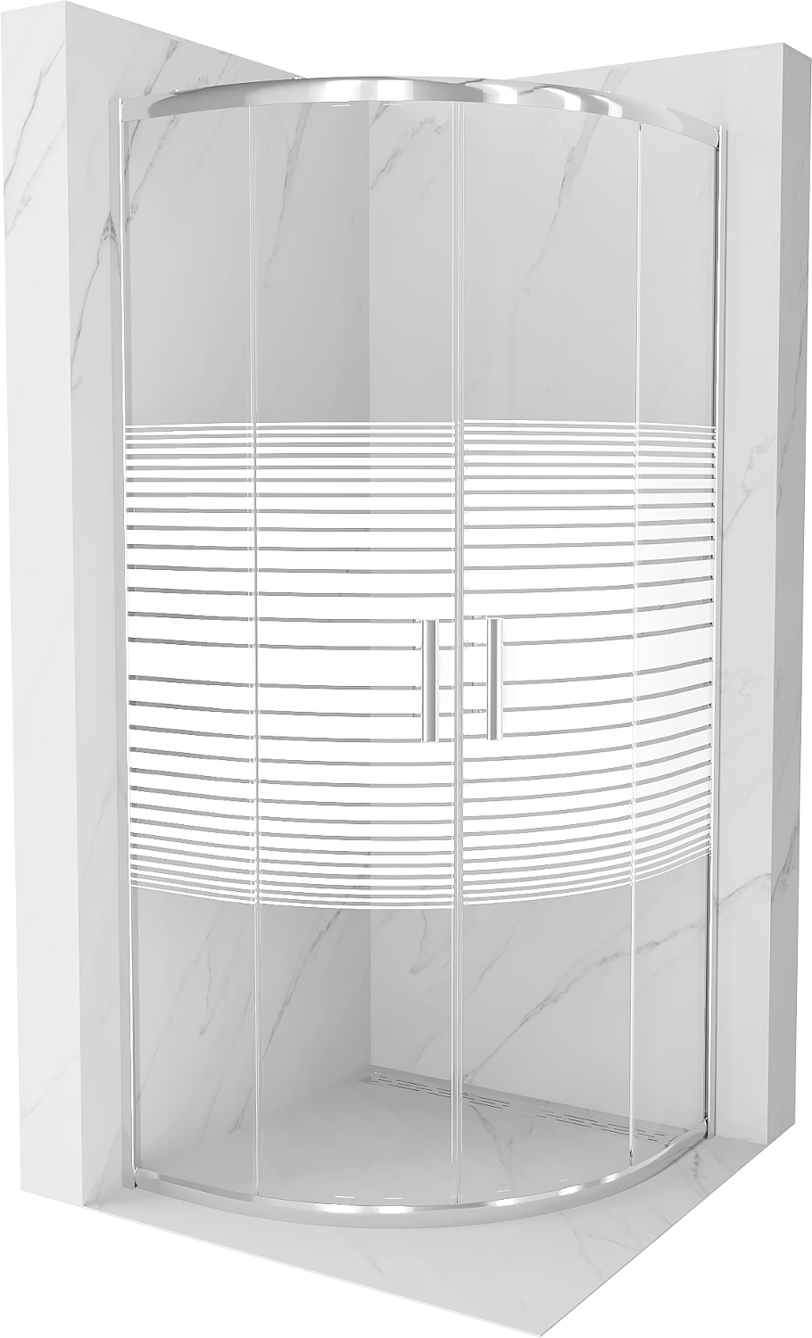 Mexen Rio sprchový kút polkruhový 90 x 90 cm, biele pruhy, chróm - 863-090-090-01-20