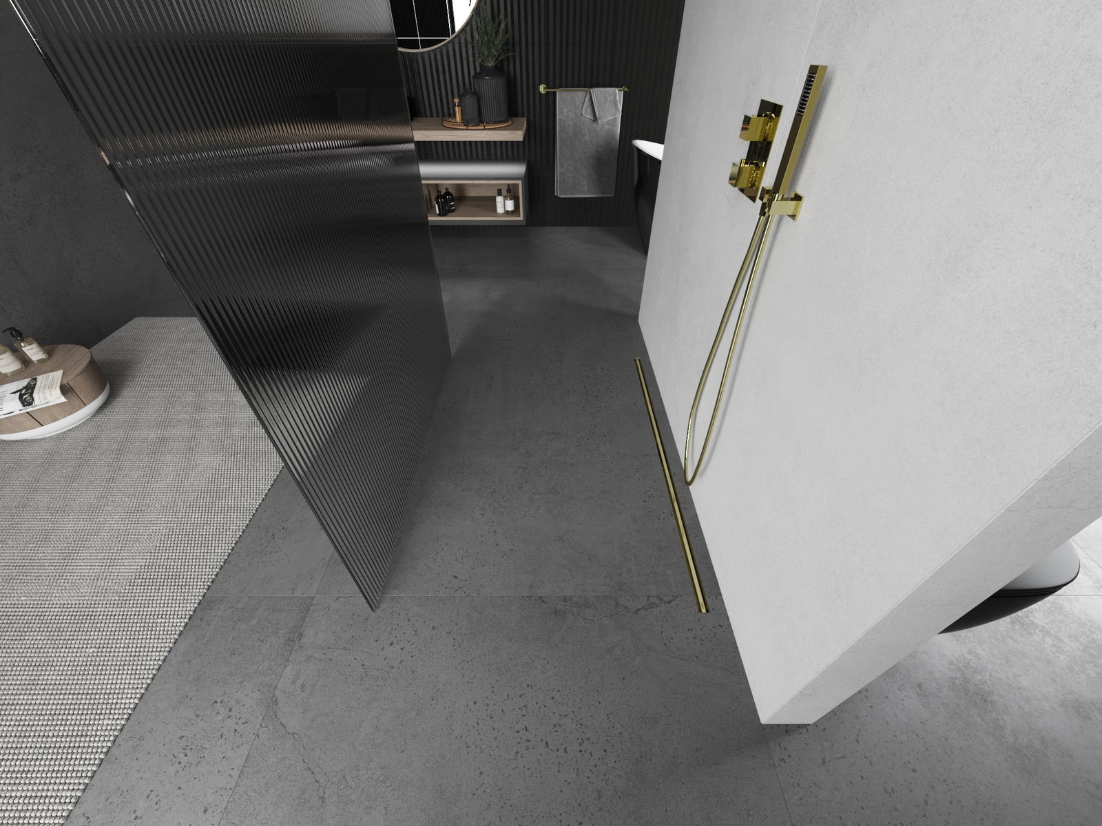 Mexen Kioto sprchová stena voľne stojaca 110 x 200 cm, pásiky 8 mm, zlatá kartáčovaná - 800-110-002-55-09