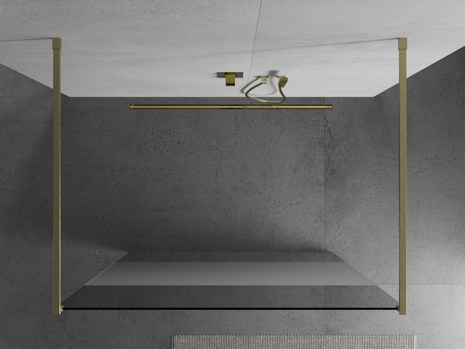 Mexen Kioto voľne stojaca sprchová stena 100 x 200 cm, priehľadná/zamatová 8 mm, zlatá kartáčovaná - 800-100-002-55-35