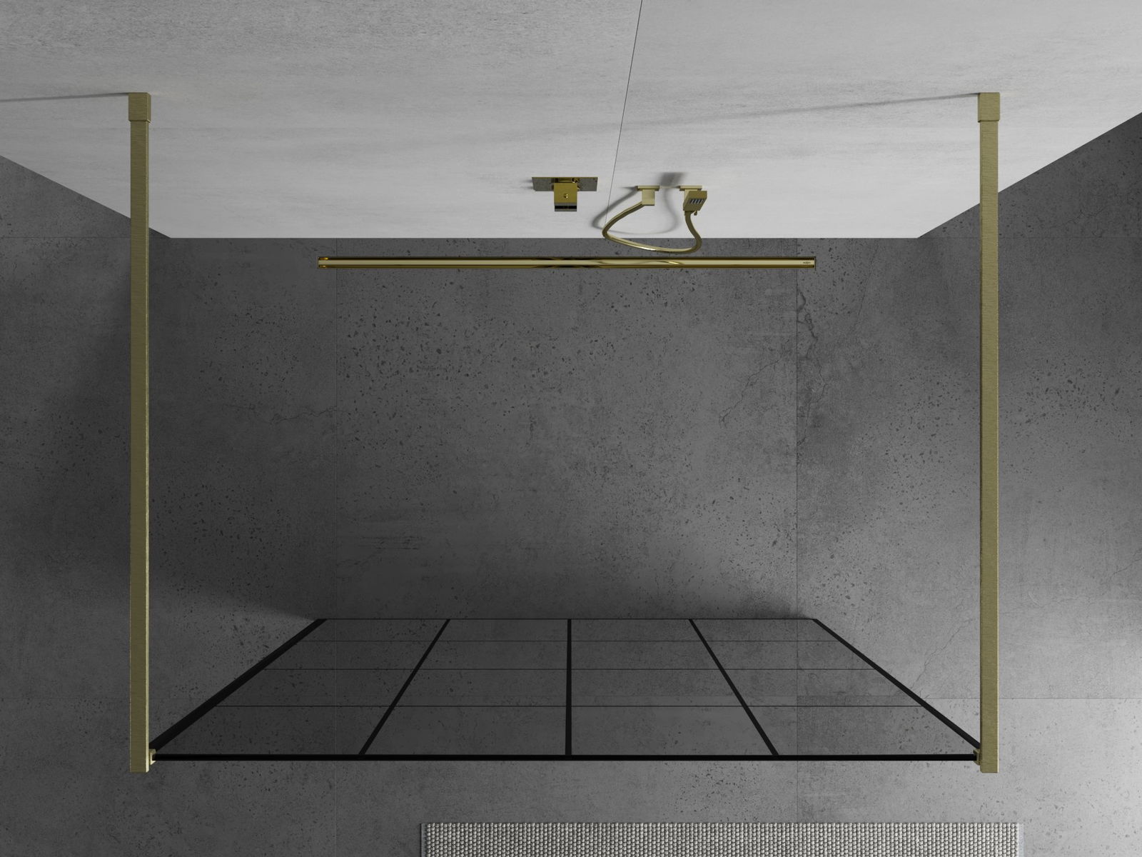 Mexen Kioto voľne stojaca sprchová stena 150 x 200 cm, čierna mriežka 8 mm, zlatá brúsená - 800-150-002-55-77