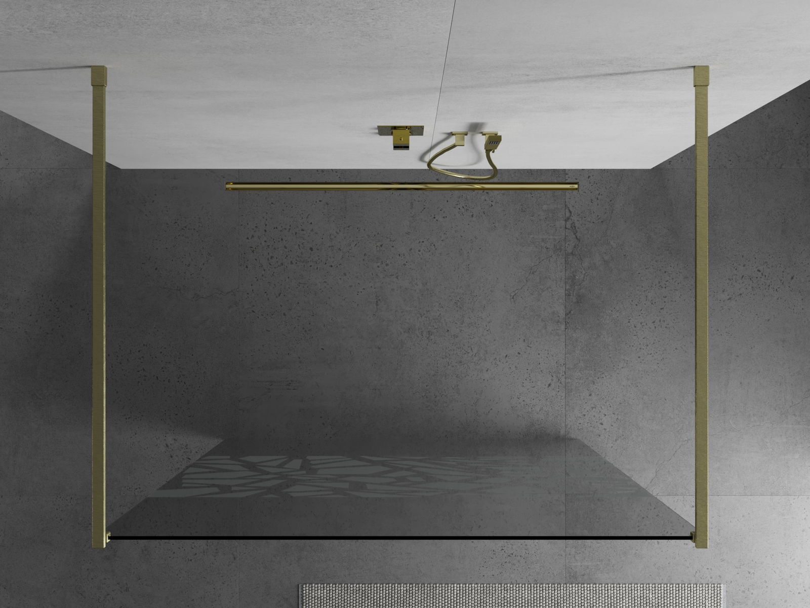 Mexen Kioto voľne stojaca sprchová stena 130 x 200 cm, biely vzor 8 mm, zlatý kartáčovaný - 800-130-002-55-85