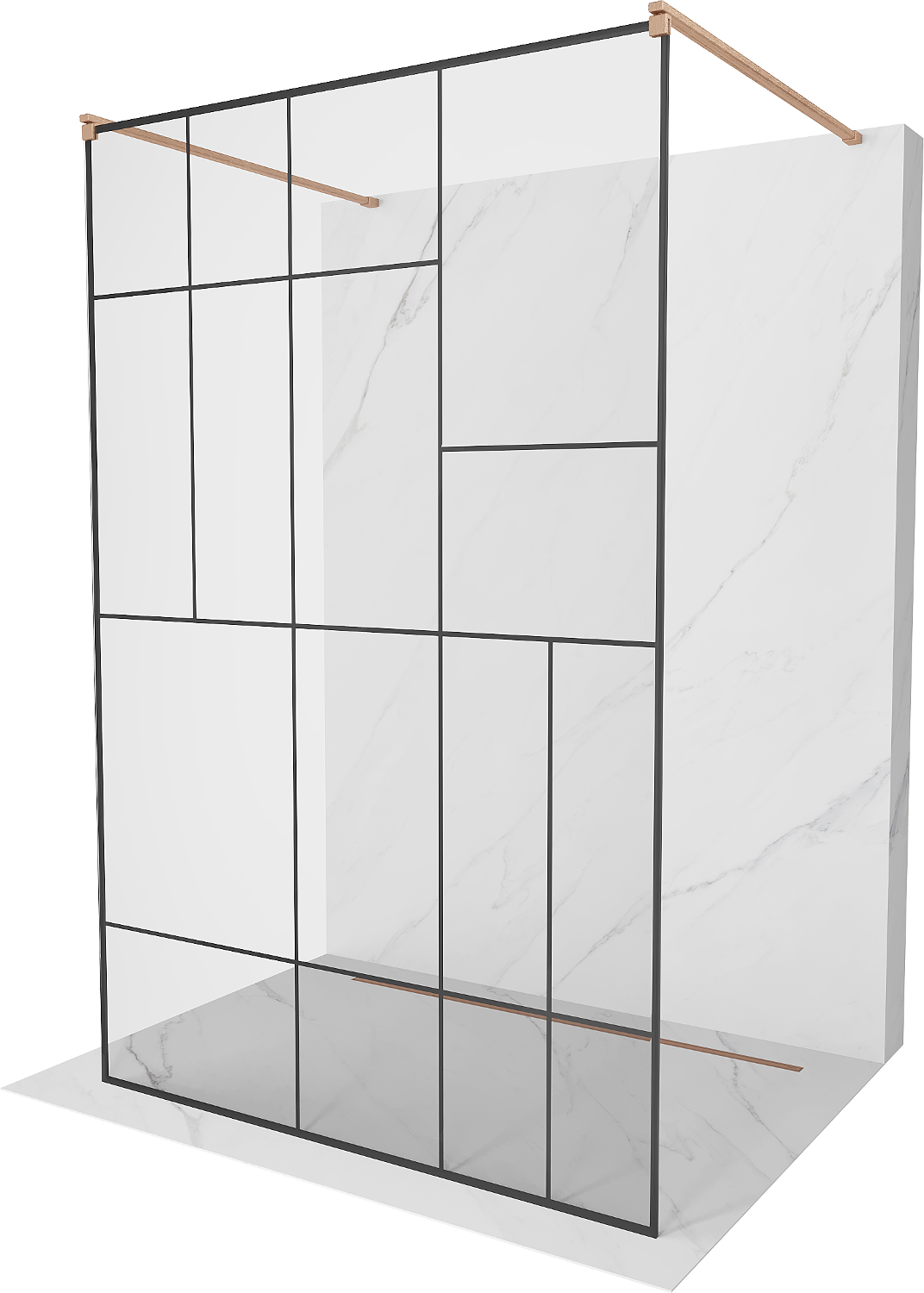 Mexen Kioto voľne stojaca sprchová stena 120 x 200 cm, čierny vzor 8 mm, leštená meď - 800-120-002-65-78