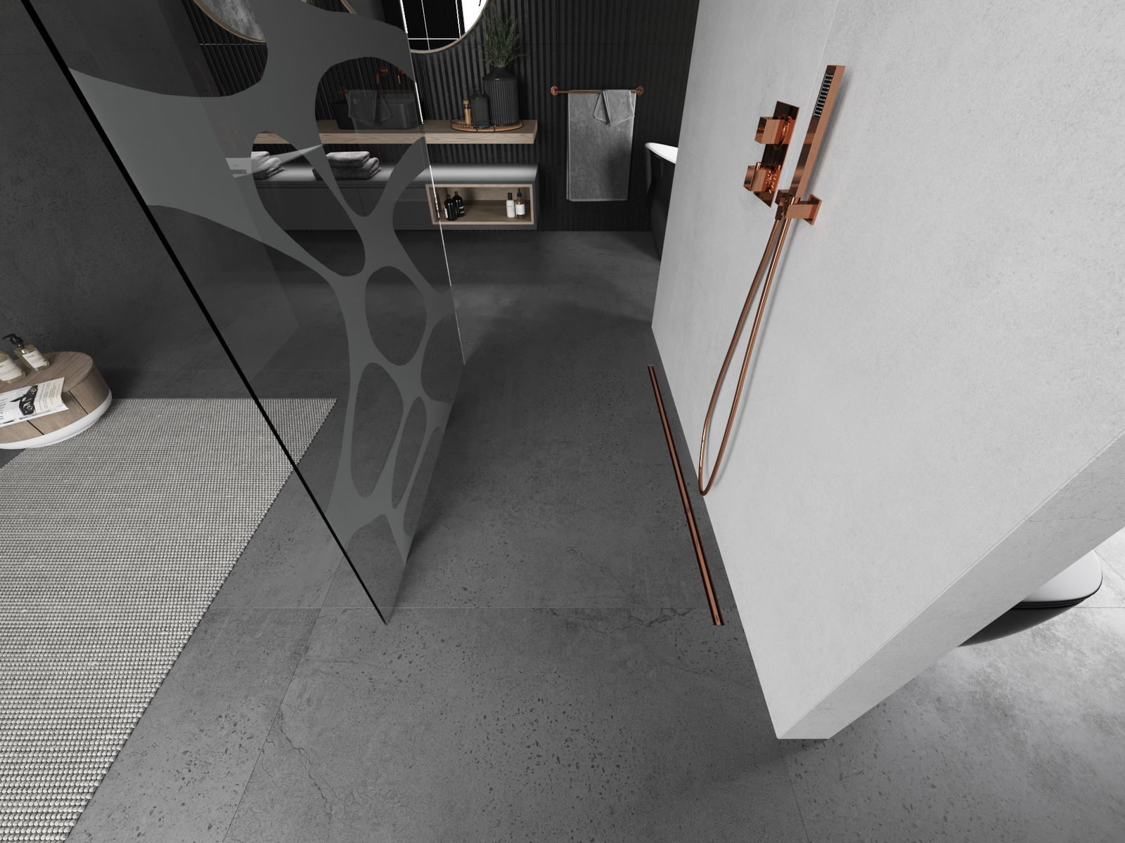 Mexen Kioto voľne stojaca sprchová stena 100 x 200 cm, biela vlna 8 mm, kartáčovaná meď - 800-100-002-65-97