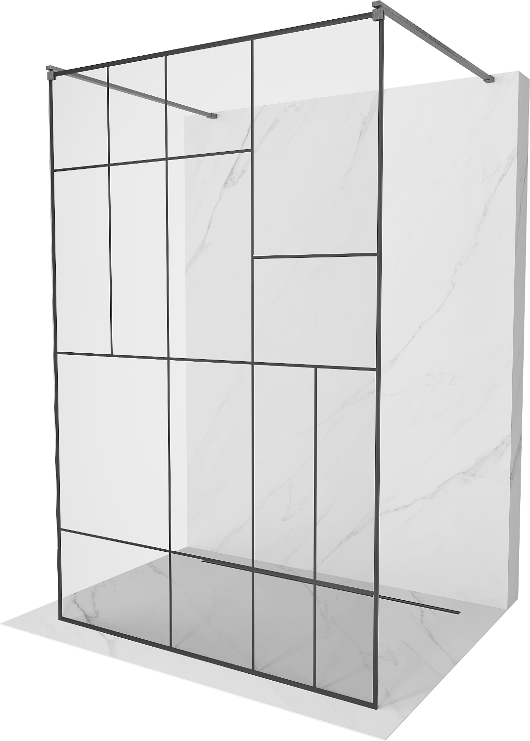 Mexen Kioto voľne stojaca sprchová stena 130 x 200 cm, čierny vzor 8 mm, brúsená zbraňová sivá - 800-130-002-66-78