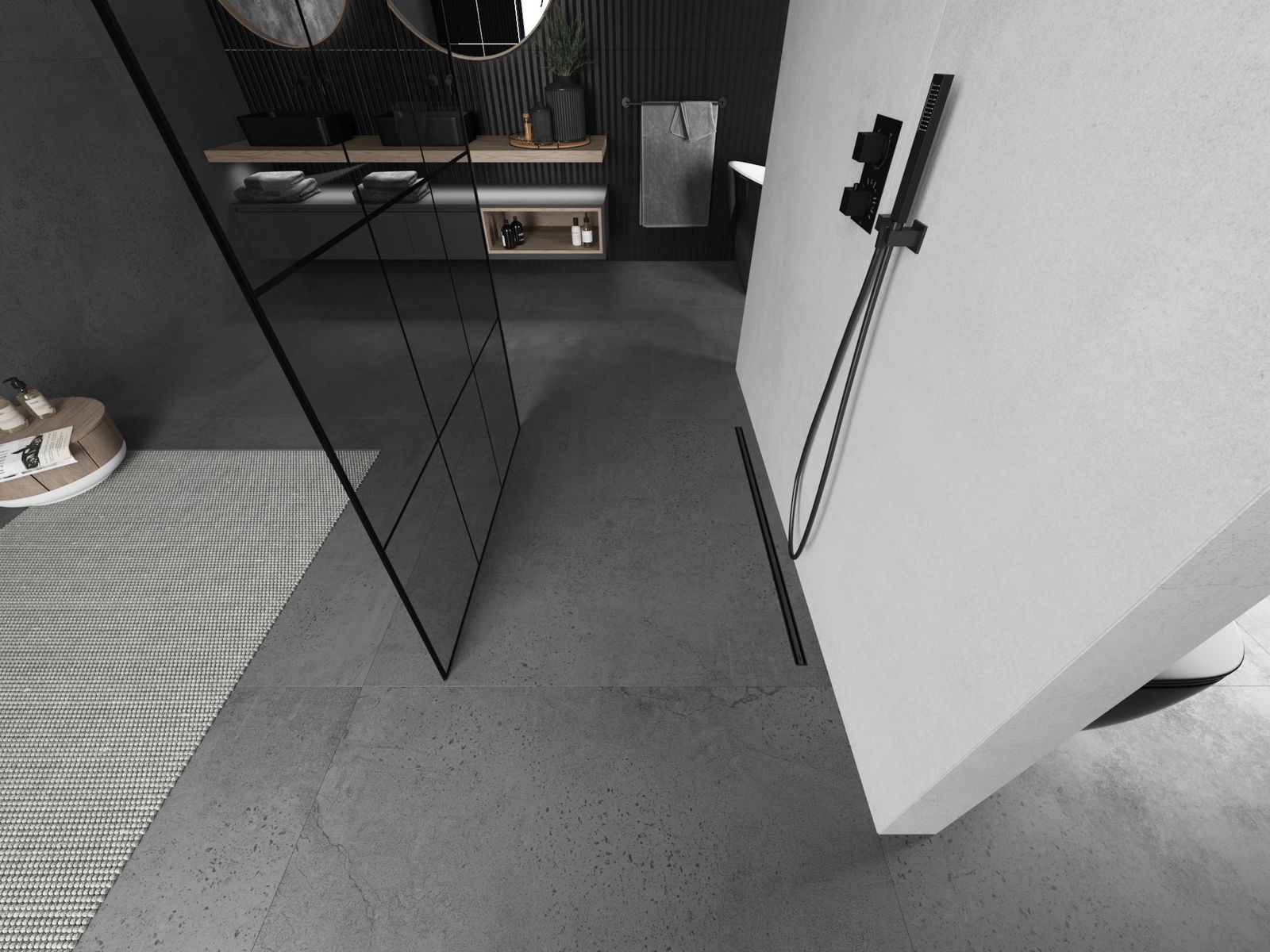 Mexen Kioto voľne stojaca sprchová stena 100 x 200 cm, čierna mriežka 8 mm, tmavý kov - 800-100-002-95-77
