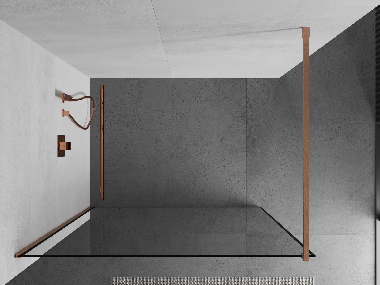 Mexen Kioto sprchová stena Walk-in 140 x 200 cm, čierny rám 8 mm, brúsená meď - 800-140-101-65-70