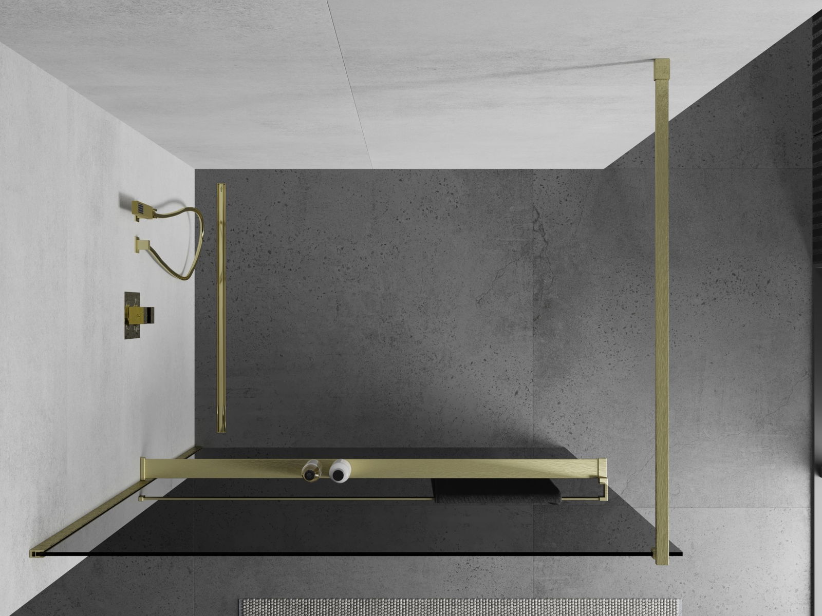 Mexen Kioto+ sprchová stena s poličkou Walk-in 70 x 200 cm, grafitová, zlatá kartáčovaná - 800-070-121-55-40