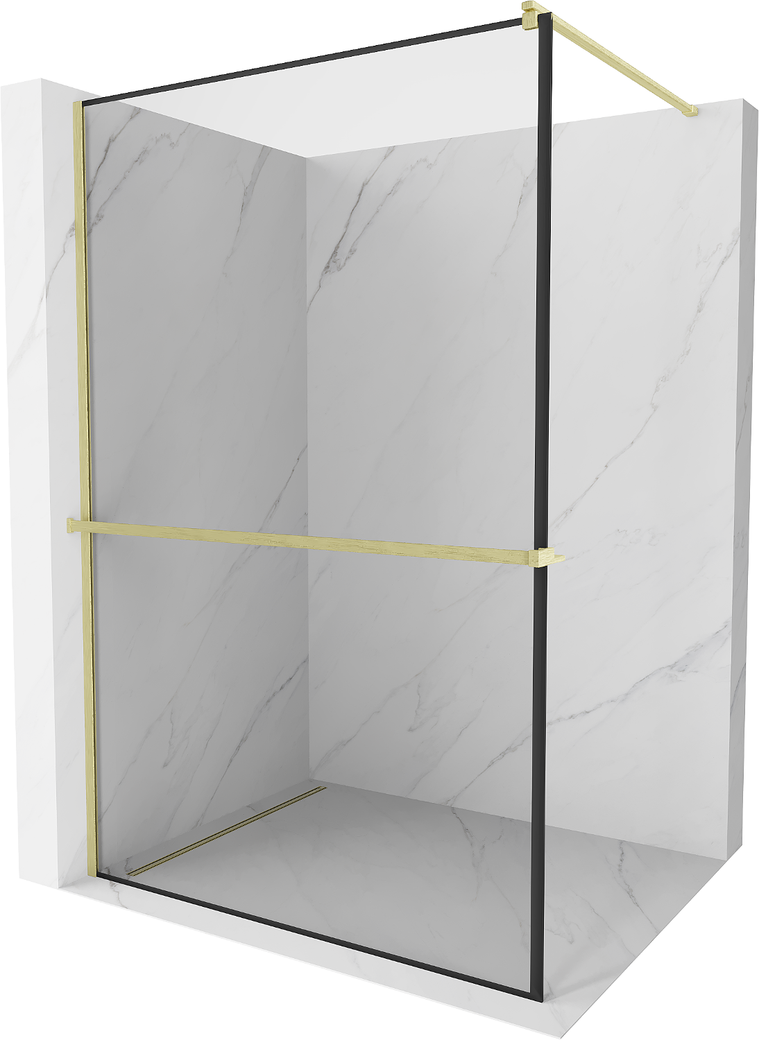 Mexen Kioto+ sprchová stena s poličkou Walk-in 100 x 200 cm, čierny rám, zlaté kartáčované - 800-100-121-55-70