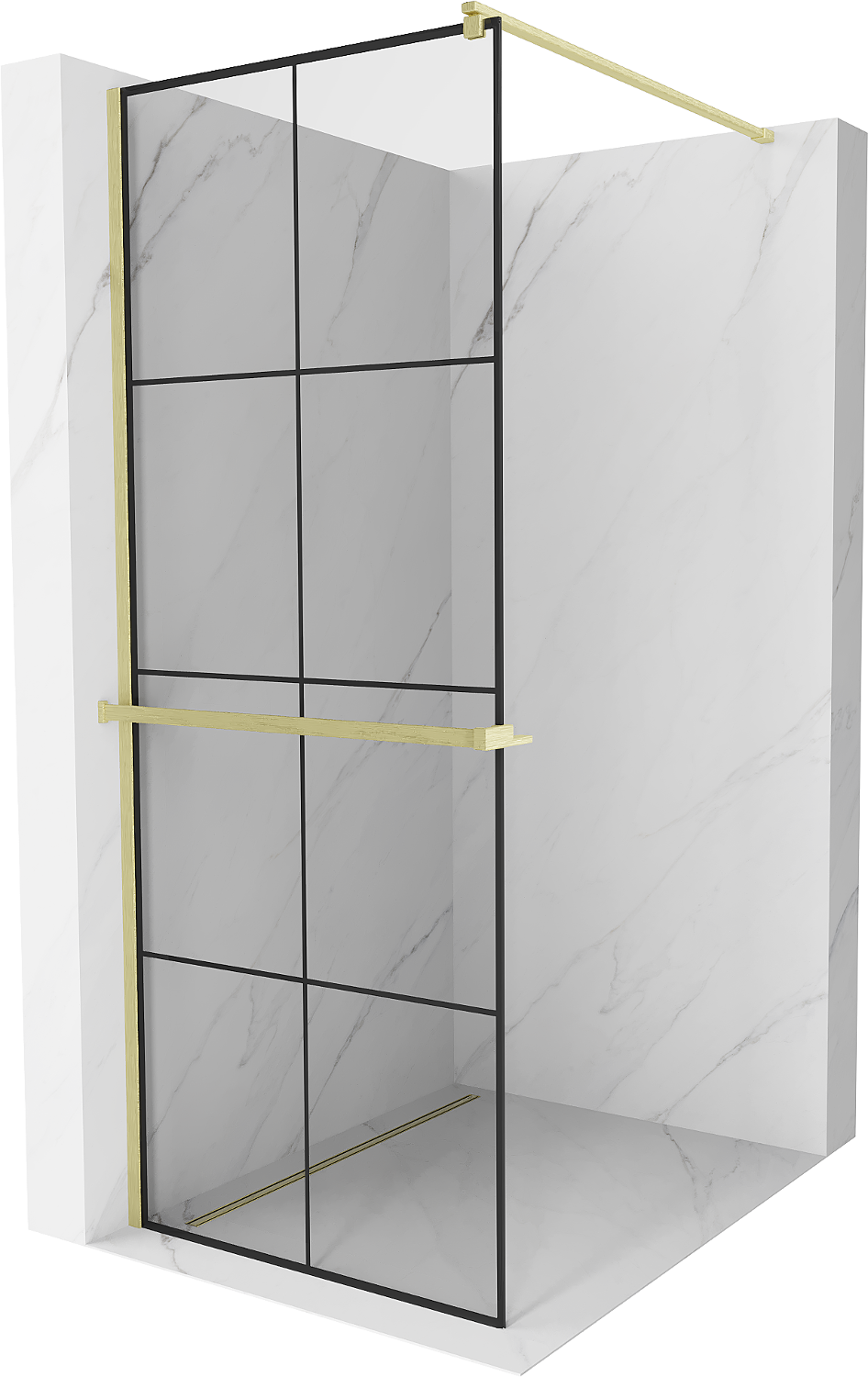 Mexen Kioto+ sprchová stena s poličkou Walk-in 70 x 200 cm, čierna mriežka, zlatá brúsená - 800-070-121-55-77