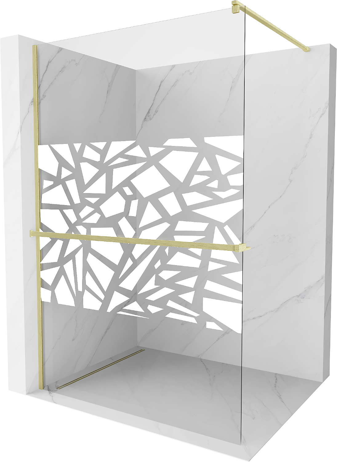 Mexen Kioto+ sprchová stena s policou Walk-in 70 x 200 cm, biely vzor, zlatý kefovaný - 800-070-121-55-85
