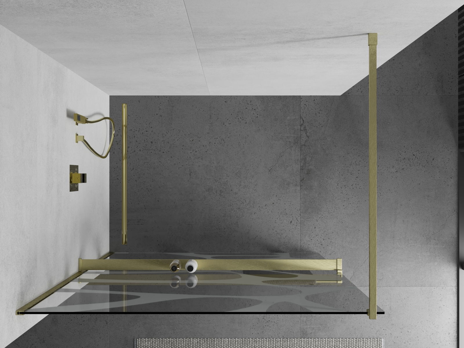 Mexen Kioto+ sprchová stena s poličkou Walk-in 110 x 200 cm, biela vlna, zlatá kartáčovaná - 800-110-121-55-97
