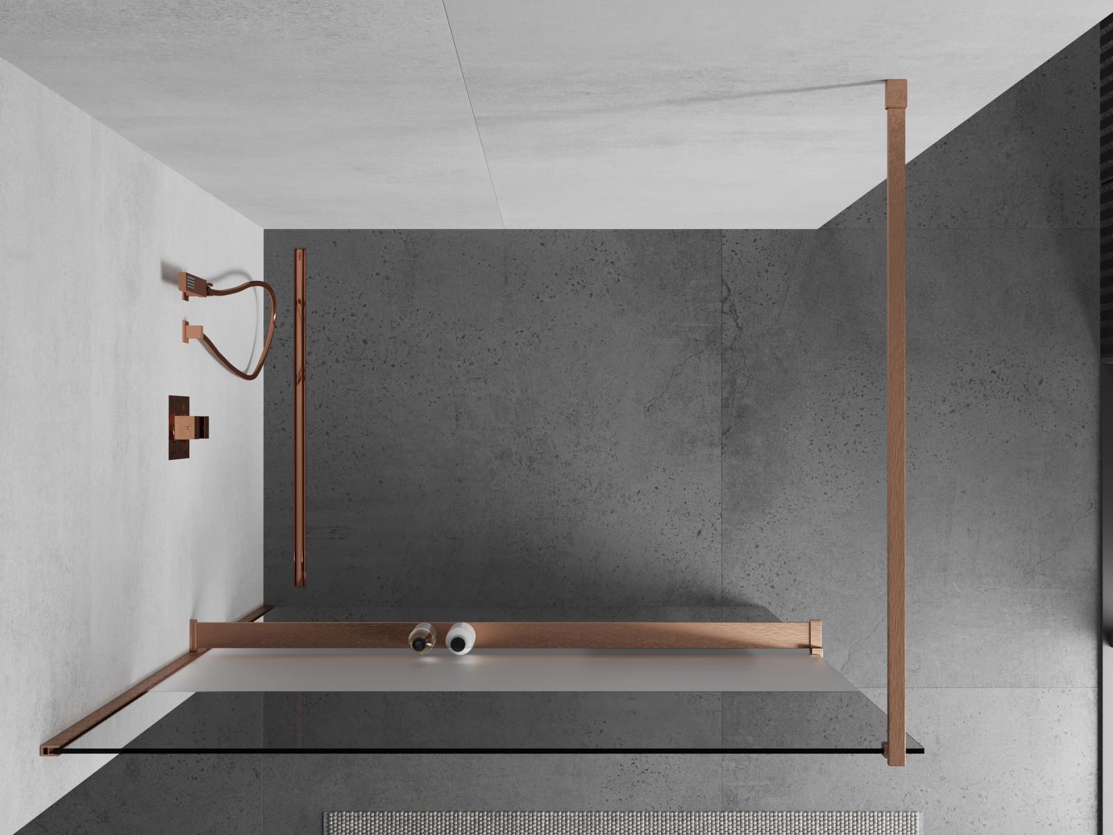 Mexen Kioto+ sprchová zástena s poličkou Walk-in 100 x 200 cm, priehľadná/matná, brúsená meď - 800-100-121-65-35