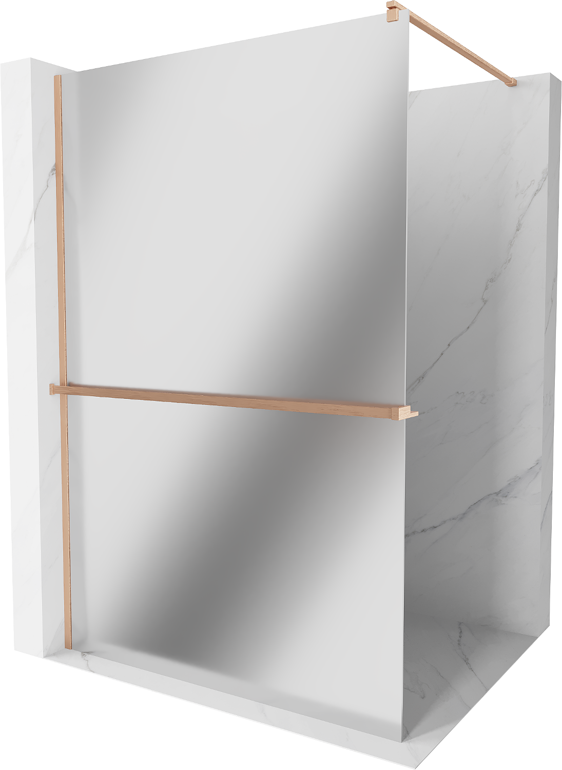 Mexen Kioto+ sprchová stena s policou Walk-in 140 x 200 cm, zrkadlo, brúsená meď - 800-140-121-65-50