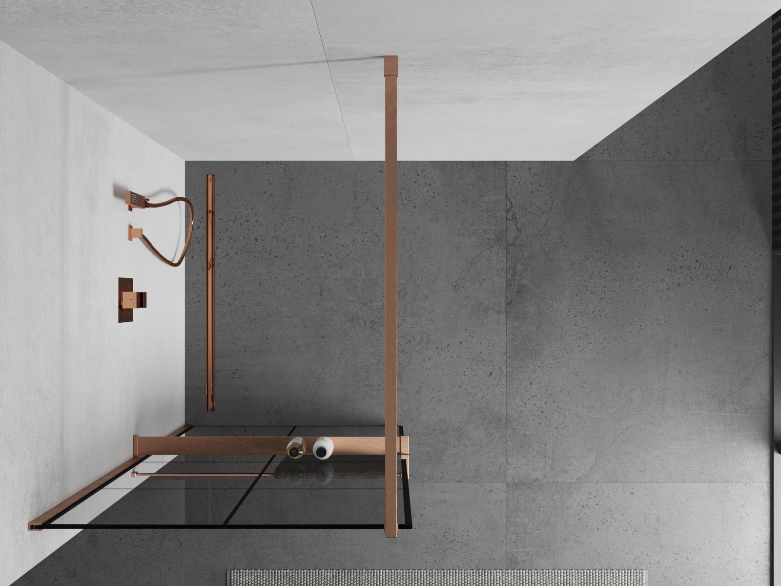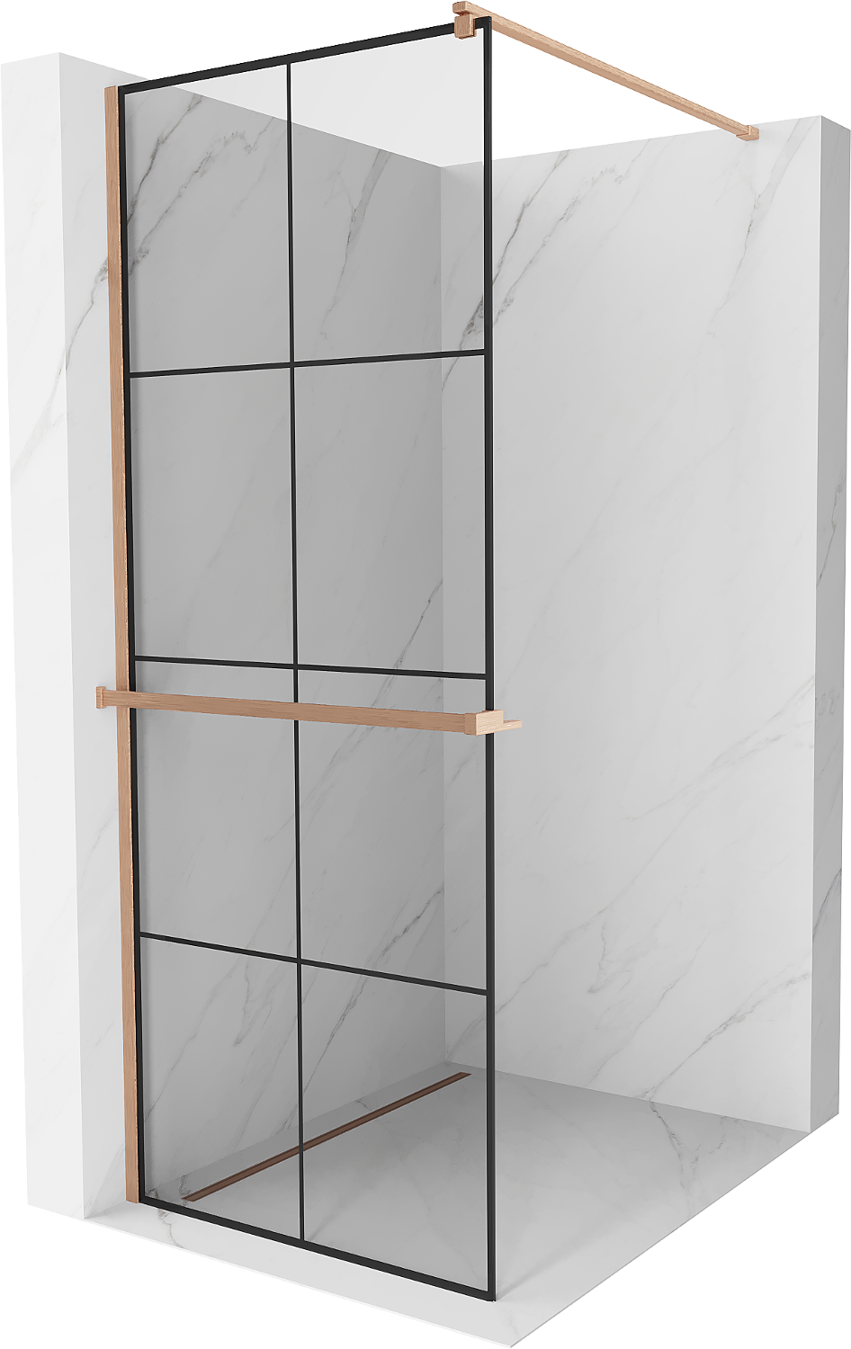 Mexen Kioto+ sprchová stena s policou Walk-in 80 x 200 cm, čierna mriežka, brúsená meď - 800-080-121-65-77