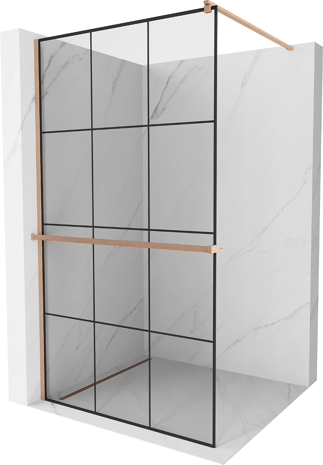 Mexen Kioto+ sprchová zástena s policou Walk-in 100 x 200 cm, čierna mriežka, brúsená meď - 800-100-121-65-77