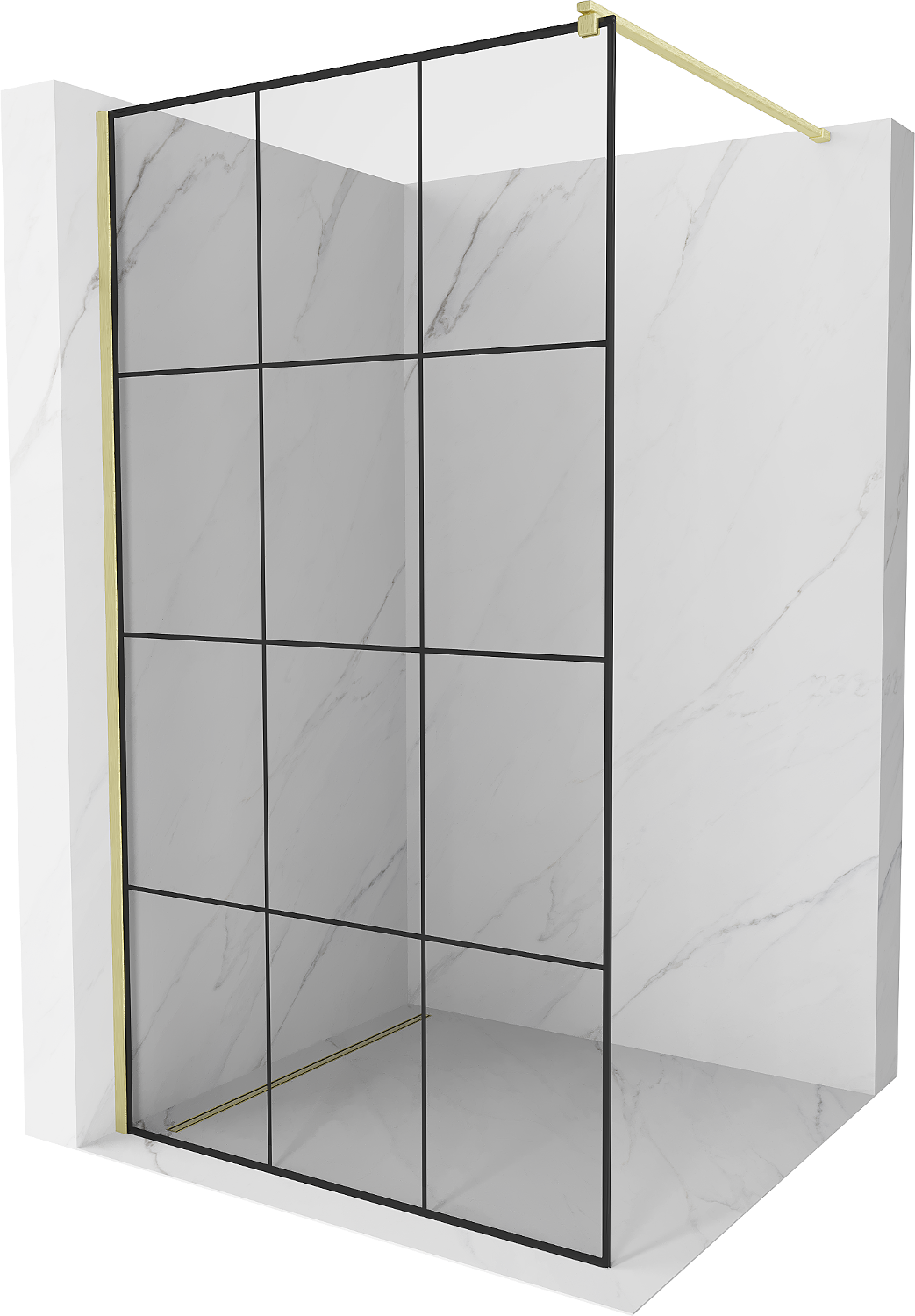 Mexen Kioto sprchová stena Walk-in 120 x 200 cm, čierna mriežka 8 mm, zlatá brúsená - 800-120-101-55-77