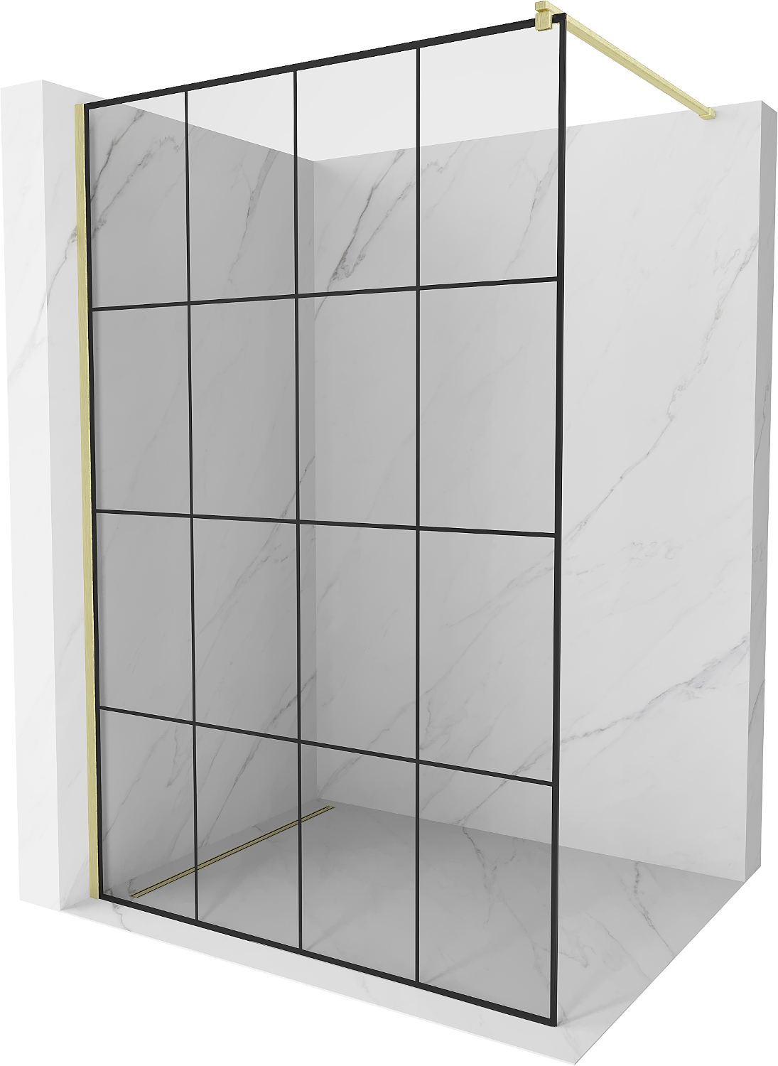 Mexen Kioto sprchová stena Walk-in 140 x 200 cm, čierna mriežka 8 mm, zlatá kartáčovaná - 800-140-101-55-77