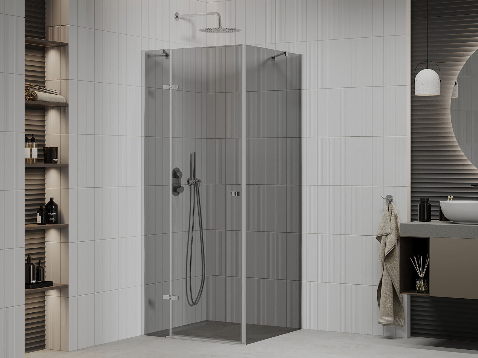 V závislosti od vašich potrieb je možné produkt namontovať na sprchovací podnos aj priamo na podlahe. Univerzálna montážna metóda vám umožňuje prispôsobiť produkt rôznym typom kúpeľní a nakonfigurovať priestor.