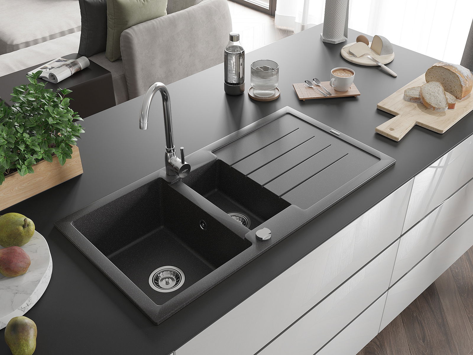 Povrch umývadla je odolný voči škvrnám a sfarbeniu, vďaka čomu sa ľahko čistí a zachováva si svoju farbu po dlhú dobu. Estetický a prakticky dopĺňajúci každú kuchyňu.