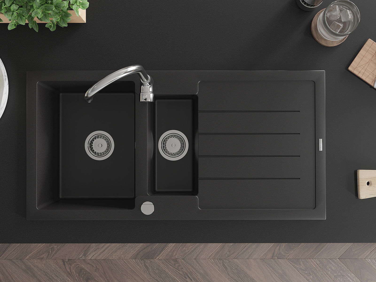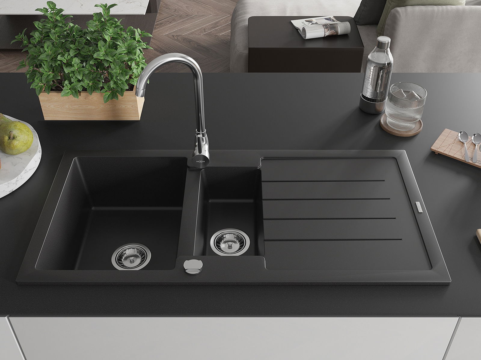 Povrch umývadla je odolný voči škvrnám a sfarbeniu, vďaka čomu sa ľahko čistí a zachováva si svoju farbu po dlhú dobu. Estetický a prakticky dopĺňajúci každú kuchyňu.