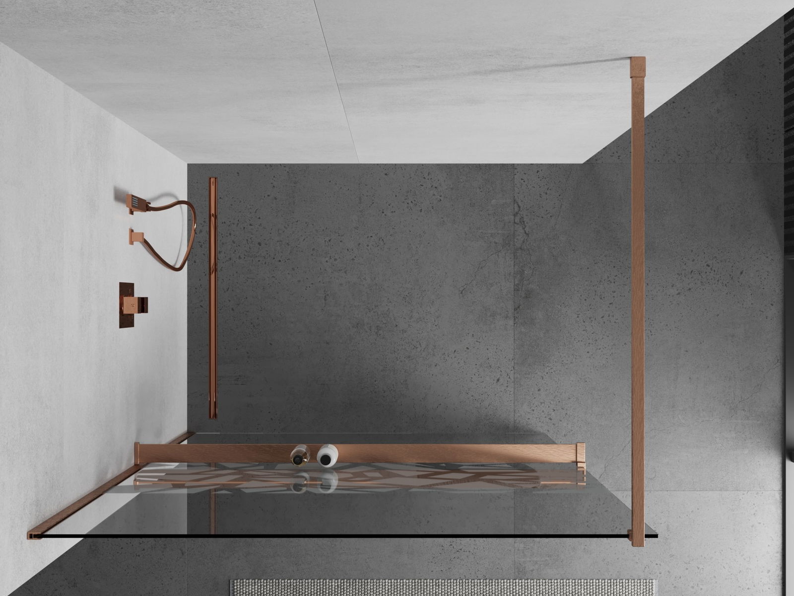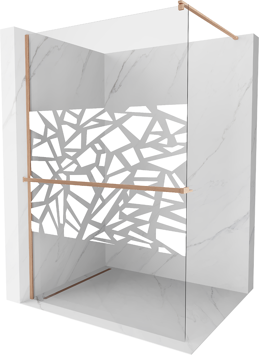 Mexen Kioto+ sprchová stena s policou Walk-in 80 x 200 cm, biely vzor, brúsená meď - 800-080-121-65-85