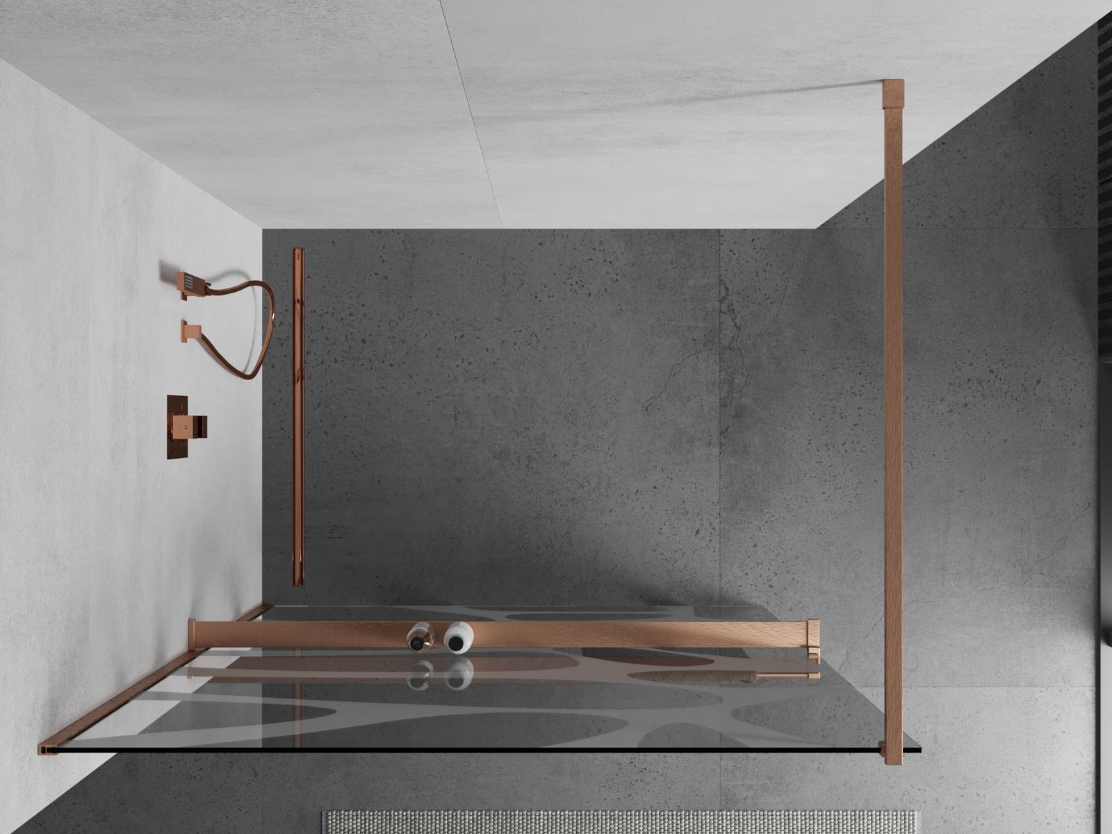 Mexen Kioto+ sprchová stena s poličkou Walk-in 90 x 200 cm, biela vlna, brúsená meď - 800-090-121-65-97
