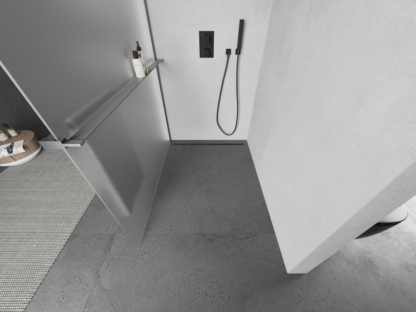 Mexen Kioto+ sprchová stena s poličkou Walk-in 90 x 200 cm, námraza, brúsená zbraňovo šedá - 800-090-121-66-30