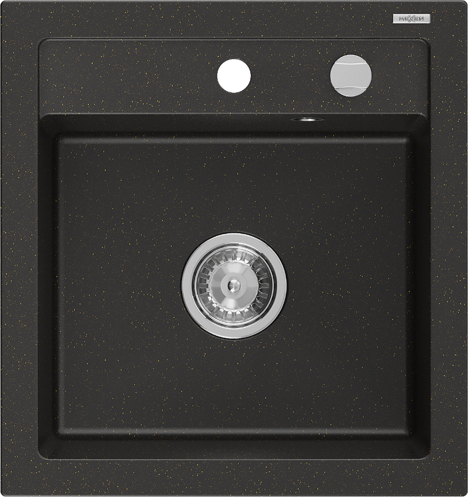 Mexen Vito granitový kuchynský drez 1-komorový 520 x 490 mm, čierny/zlatý metalik, sifón chróm - 6503521000-75