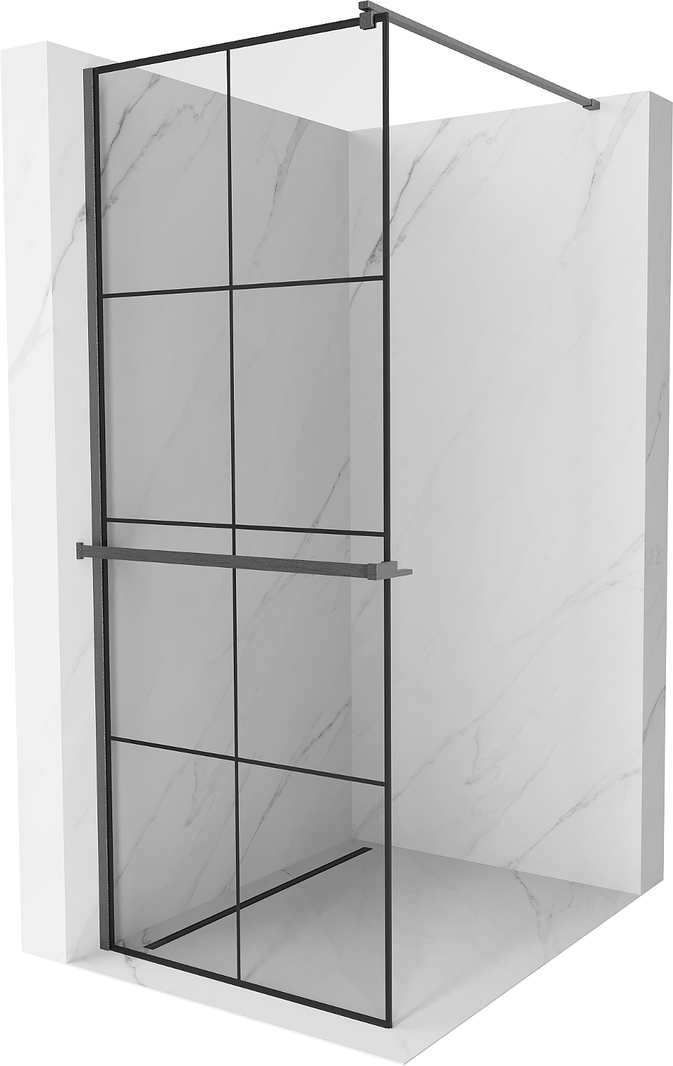 Mexen Kioto+ sprchová stena s poličkou Walk-in 70 x 200 cm, čierna mriežka, kartáčovaná puška sivá - 800-070-121-66-77