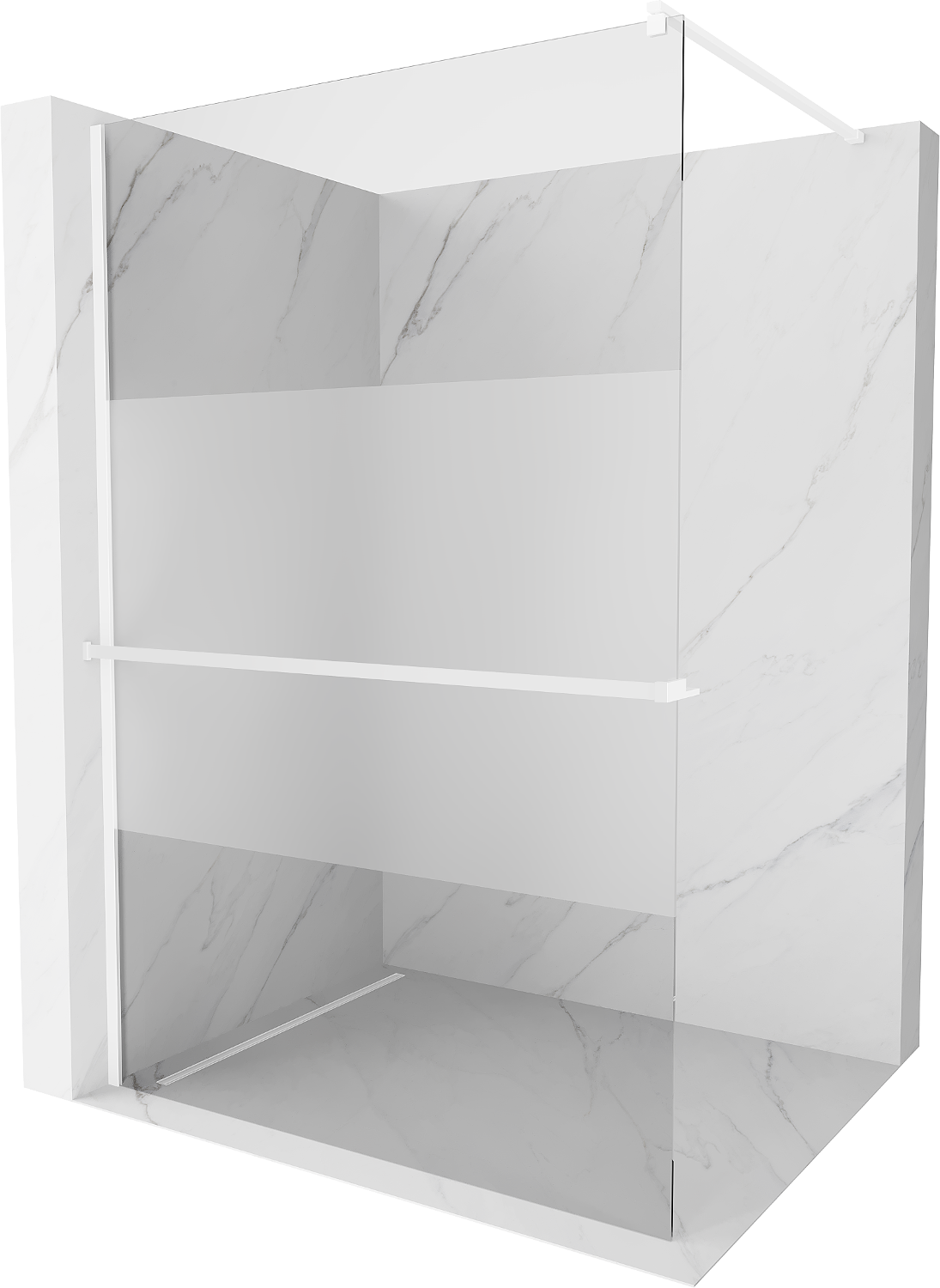 Mexen Kioto+ sprchová stena s poličkou Walk-in 70 x 200 cm, transparentná/matná, biela - 800-070-121-20-35