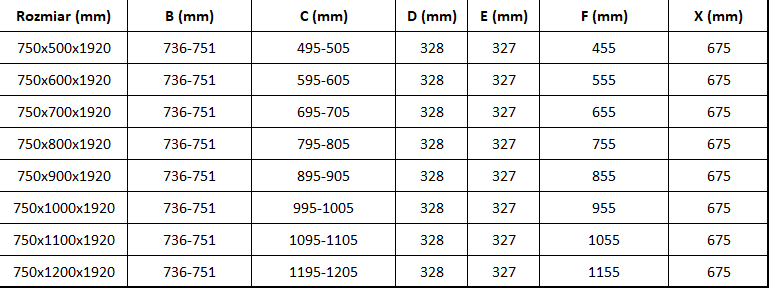 Rozmer: 75x100 cm (dvere 75 cm, stena 100 cm)