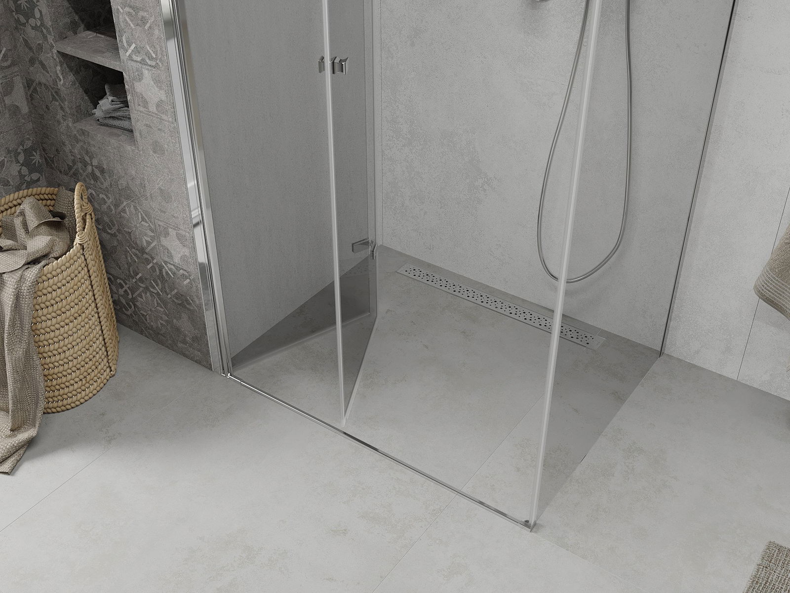 Schopnosť zložiť dvere vonku aj vo vnútri vám umožňuje získať viac priestoru, keď nepoužívate sprchu. Je to ideálne riešenie pre menšie kúpeľne, maximálne pomocou dostupného povrchu.