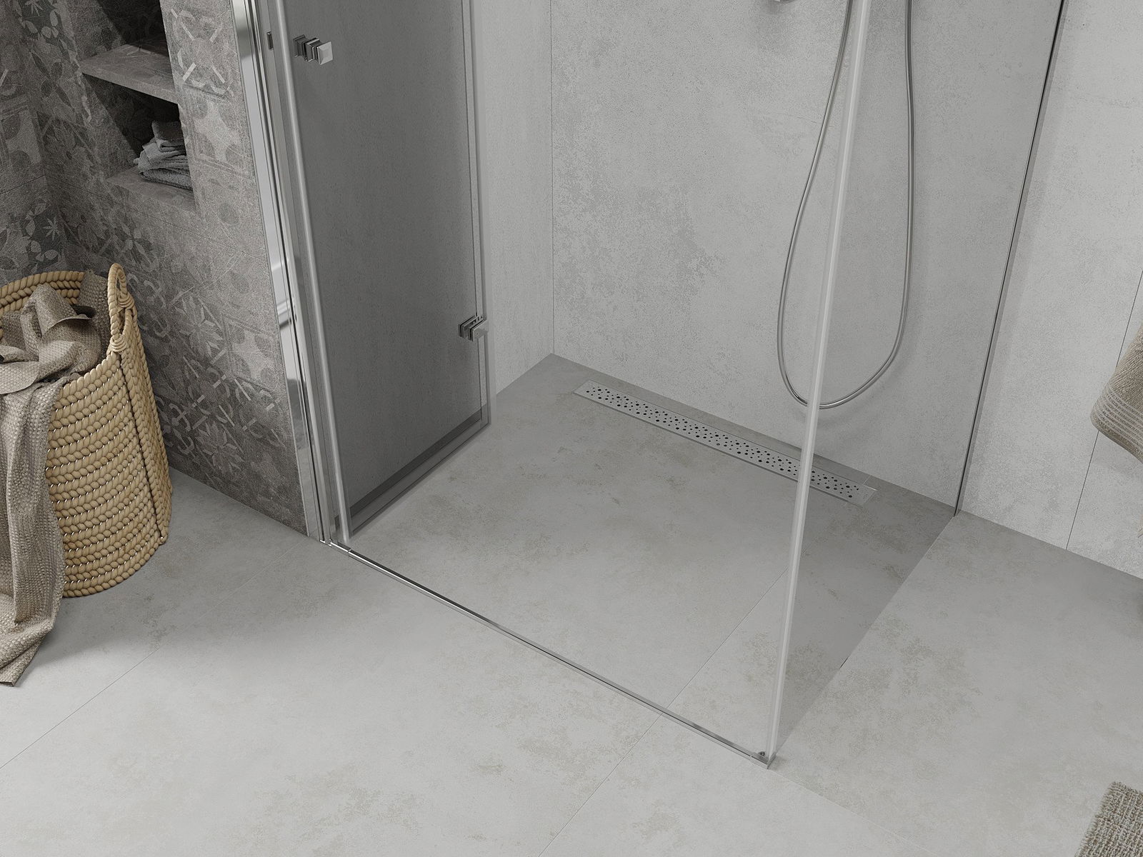 V závislosti od vašich potrieb je možné produkt namontovať na sprchovací podnos aj priamo na podlahe. Univerzálna montážna metóda vám umožňuje prispôsobiť produkt rôznym typom kúpeľní a nakonfigurovať priestor.