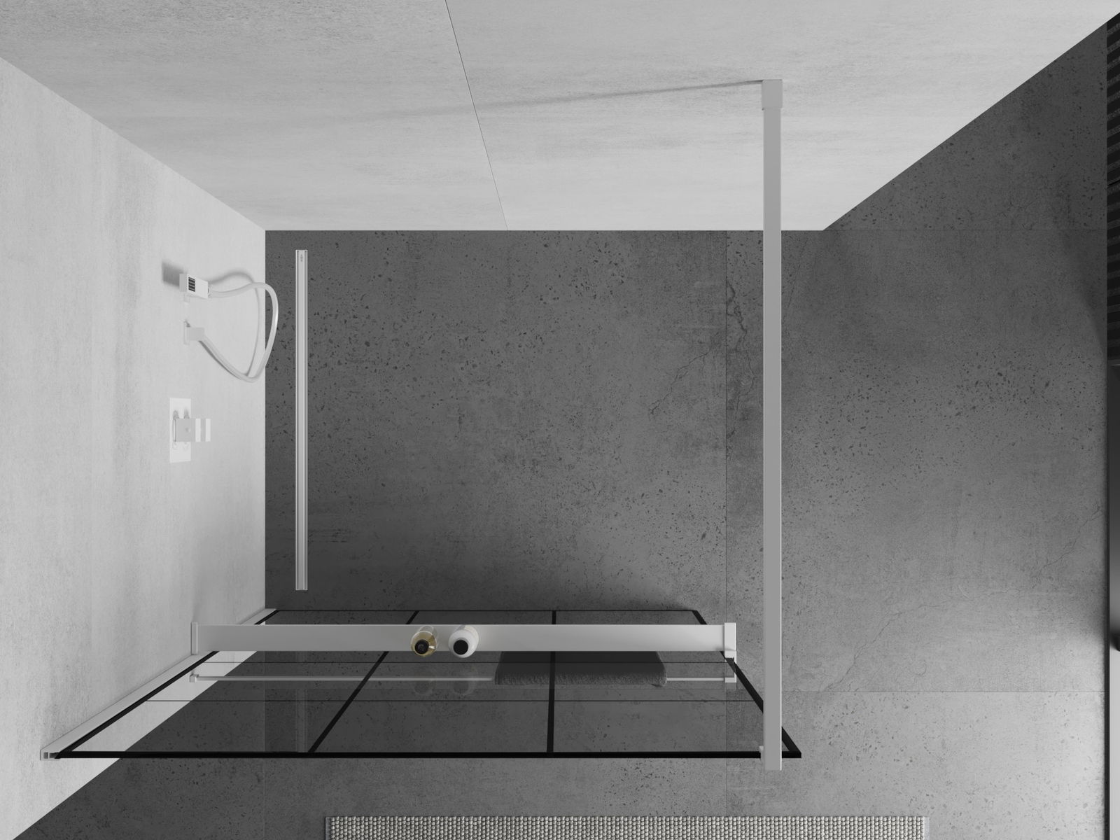 Mexen Kioto+ sprchová stena s poličkou Walk-in 100 x 200 cm, čierna mriežka, biela - 800-100-121-20-77