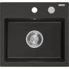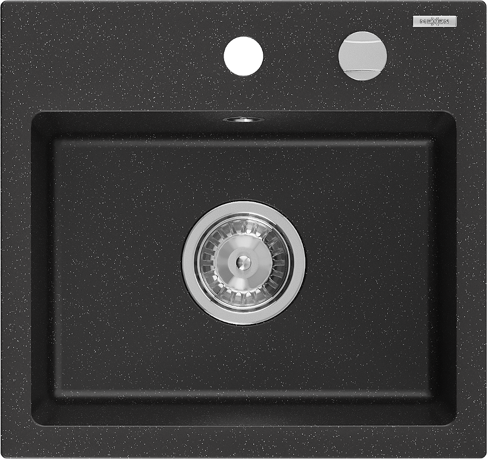 Mexen Milo žulový drez 1-komorový 435 x 410 mm, čierny/strieborný metalik, sifón chróm - 6505441000-73