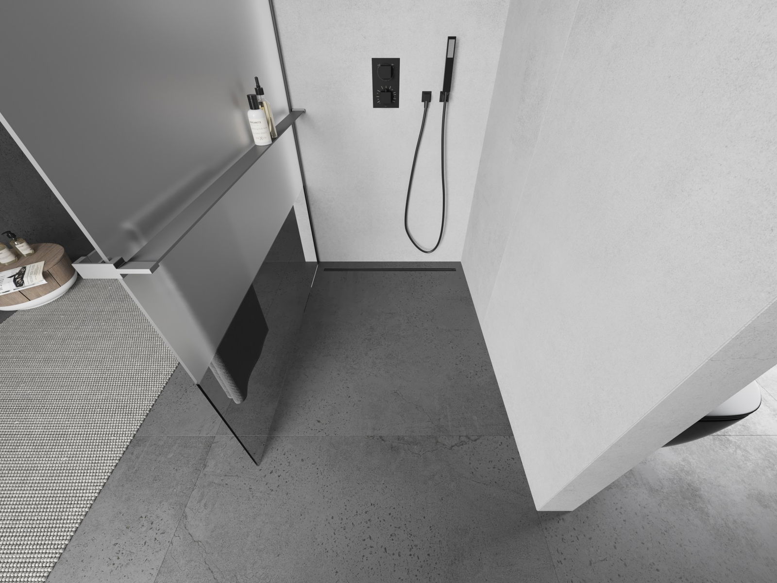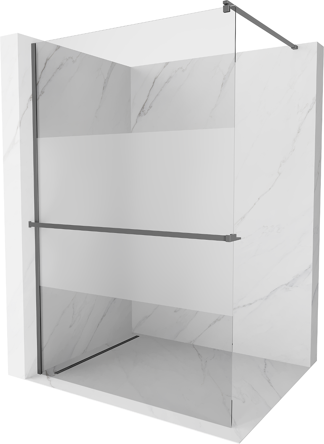 Mexen Kioto+ sprchová stena s poličkou Walk-in 90 x 200 cm, transparentná/mrazená, gun metal - 800-090-121-95-35