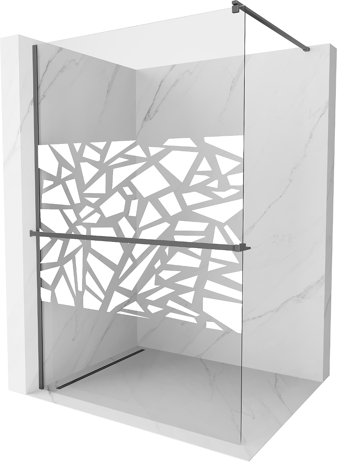 Mexen Kioto+ sprchová stena s poličkou Walk-in 100 x 200 cm, biely vzor, gun metal - 800-100-121-95-85