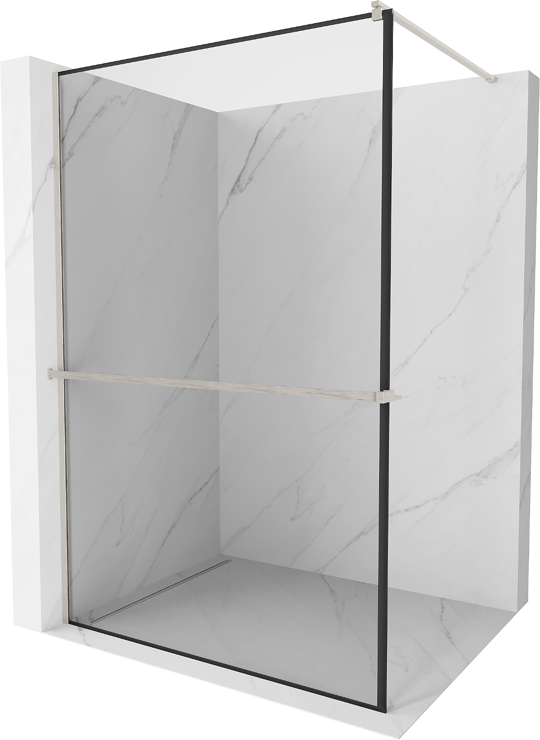 Mexen Kioto+ sprchová stena s poličkou Walk-in 90 x 200 cm, čierny rám, brúsený nikel - 800-090-121-97-70