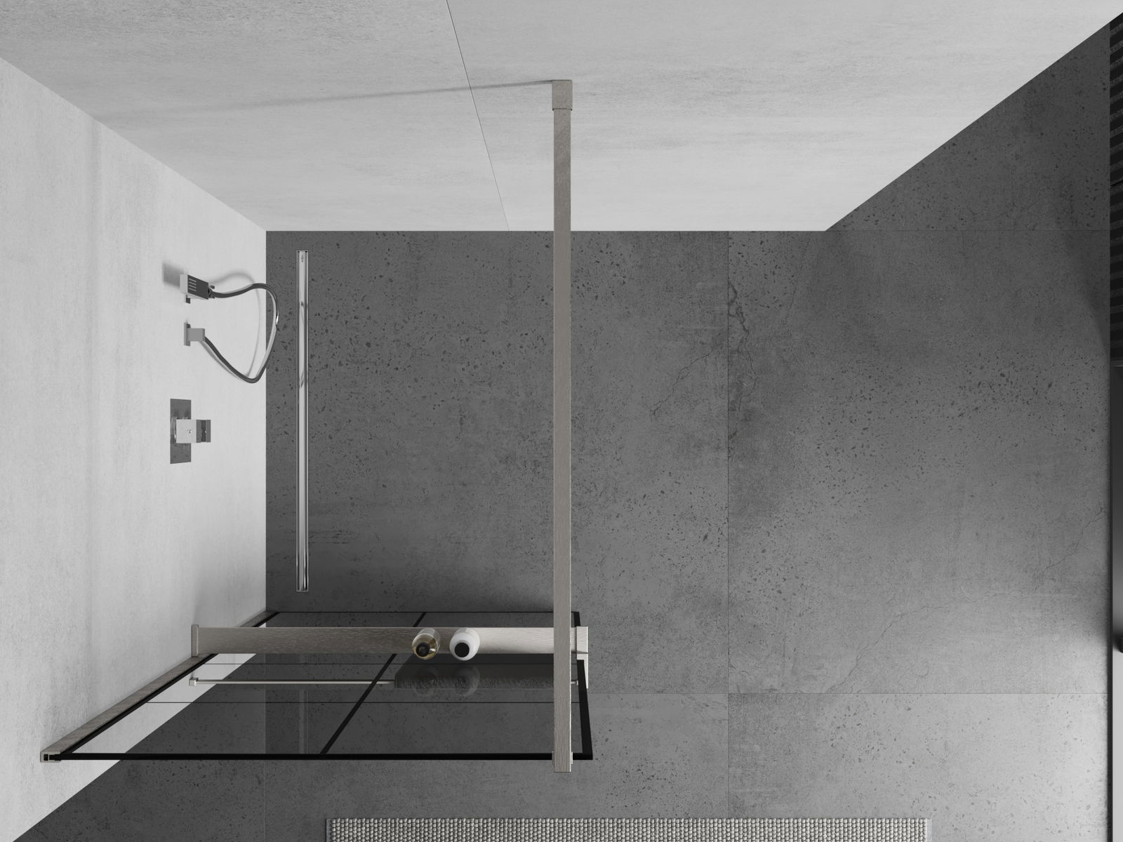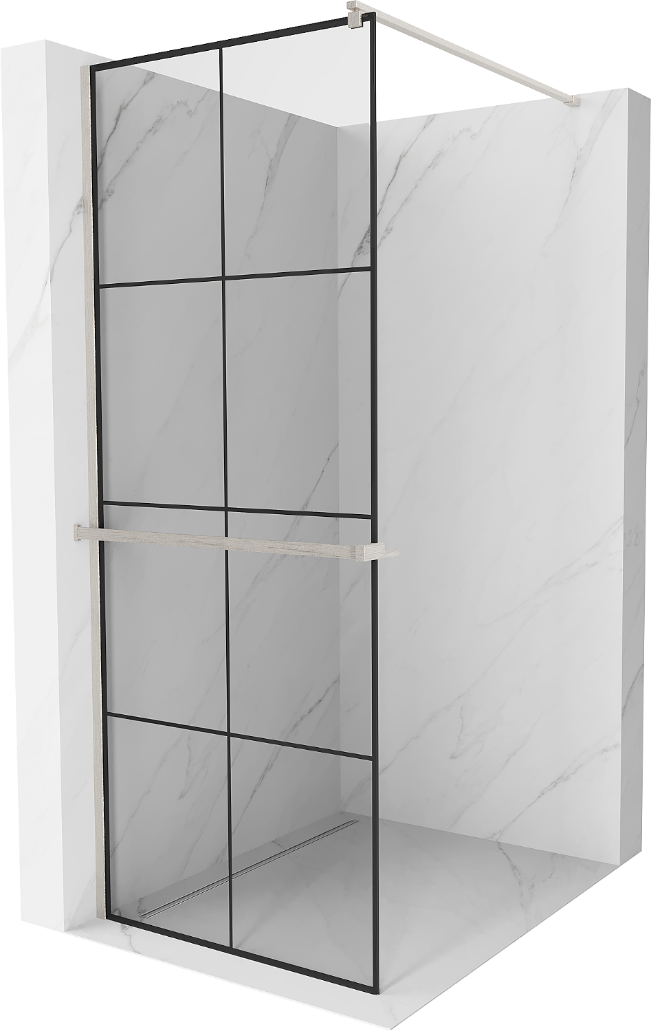 Mexen Kioto+ sprchová stena s policou Walk-in 70 x 200 cm, čierna mriežka, brúsený nikel - 800-070-121-97-77