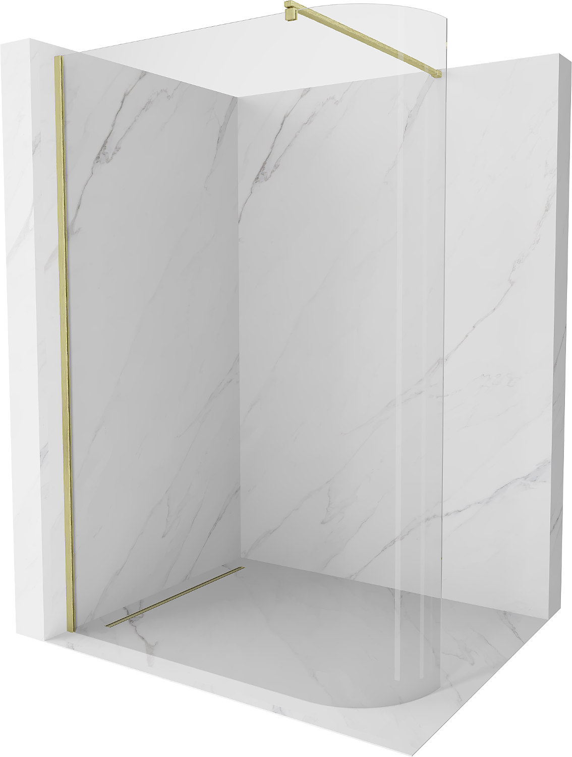 Mexen Kioto-R zaoblená sprchová stena Walk-in 140 x 200 cm, priehľadná 8 mm, zlatá kartáčovaná - 800-140-101-55-06