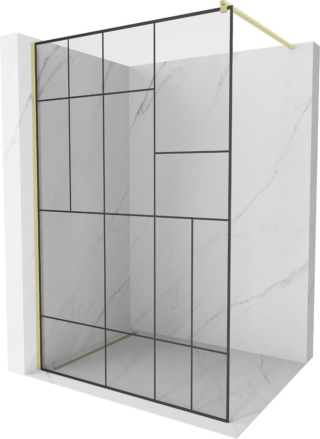 Mexen Kioto sprchová stena Walk-in 80 x 200 cm, čierny vzor 8 mm, zlatá kartáčovaná - 800-080-101-55-78