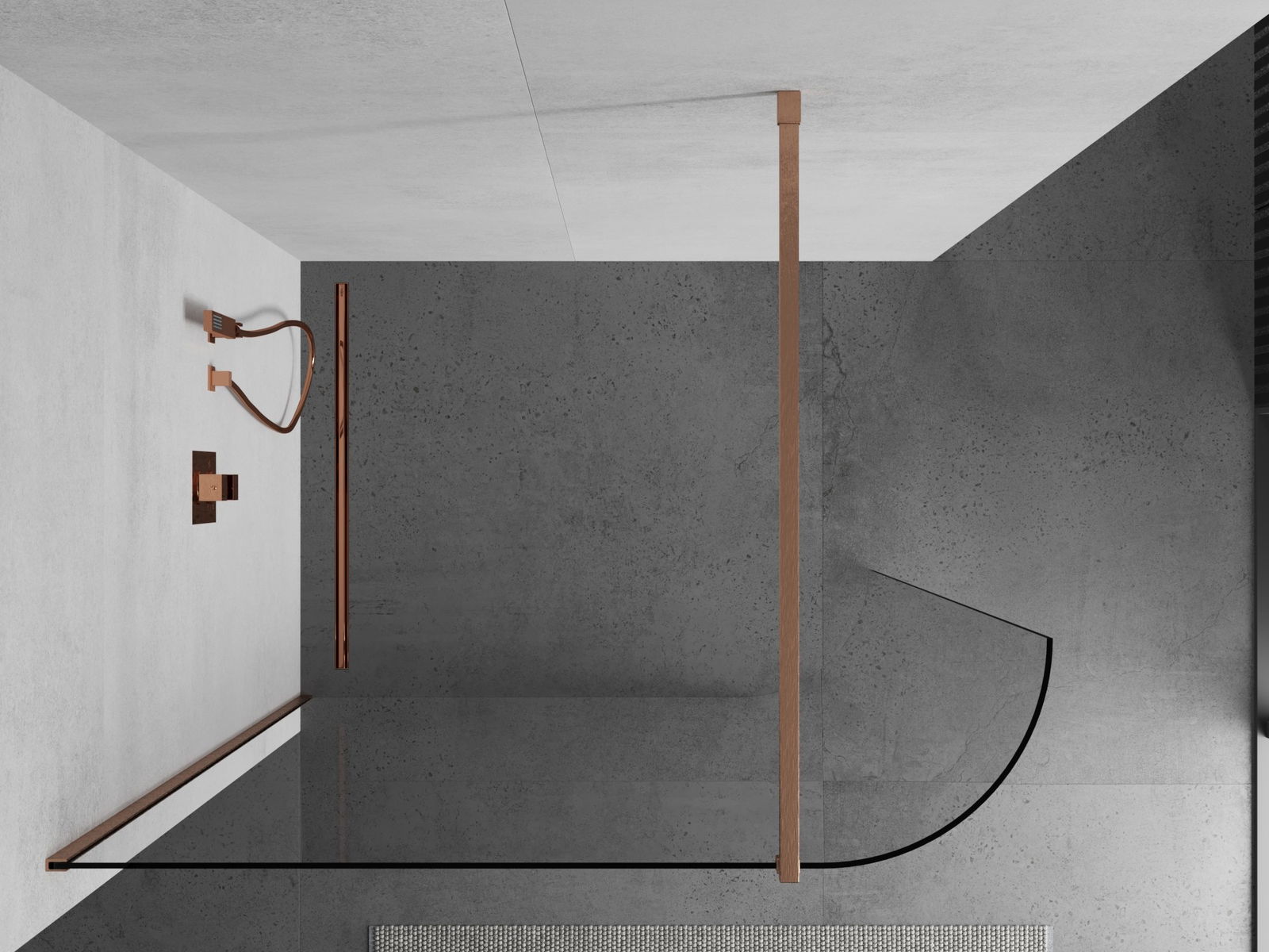 Mexen Kioto-R zakrivená sprchová stena Walk-in 100 x 200 cm, transparentná 8 mm, brúsená meď - 800-100-101-65-06