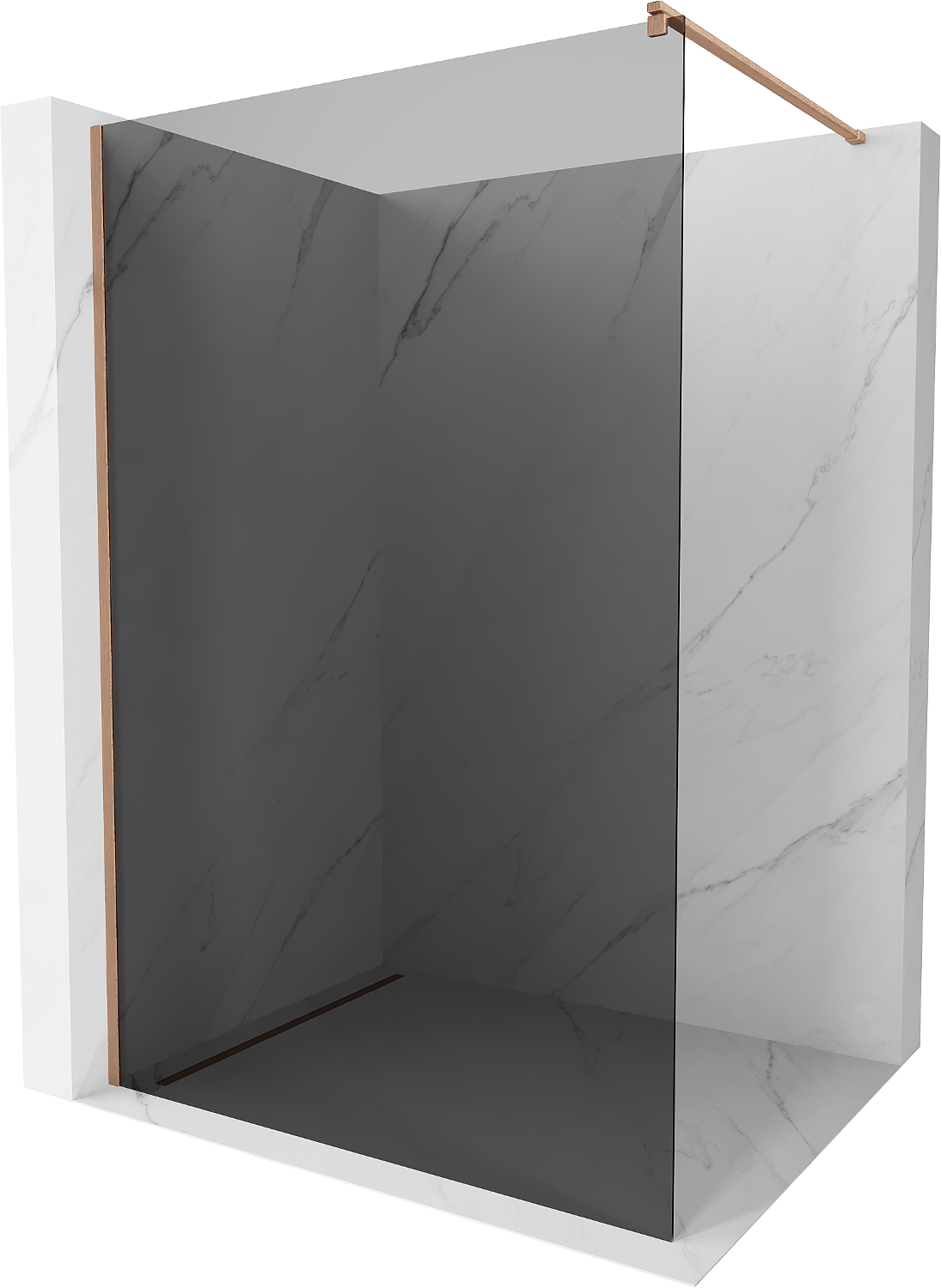 Mexen Kioto sprchová stena Walk-in 90 x 200 cm, grafit 8 mm, brúsený meď - 800-090-101-65-40