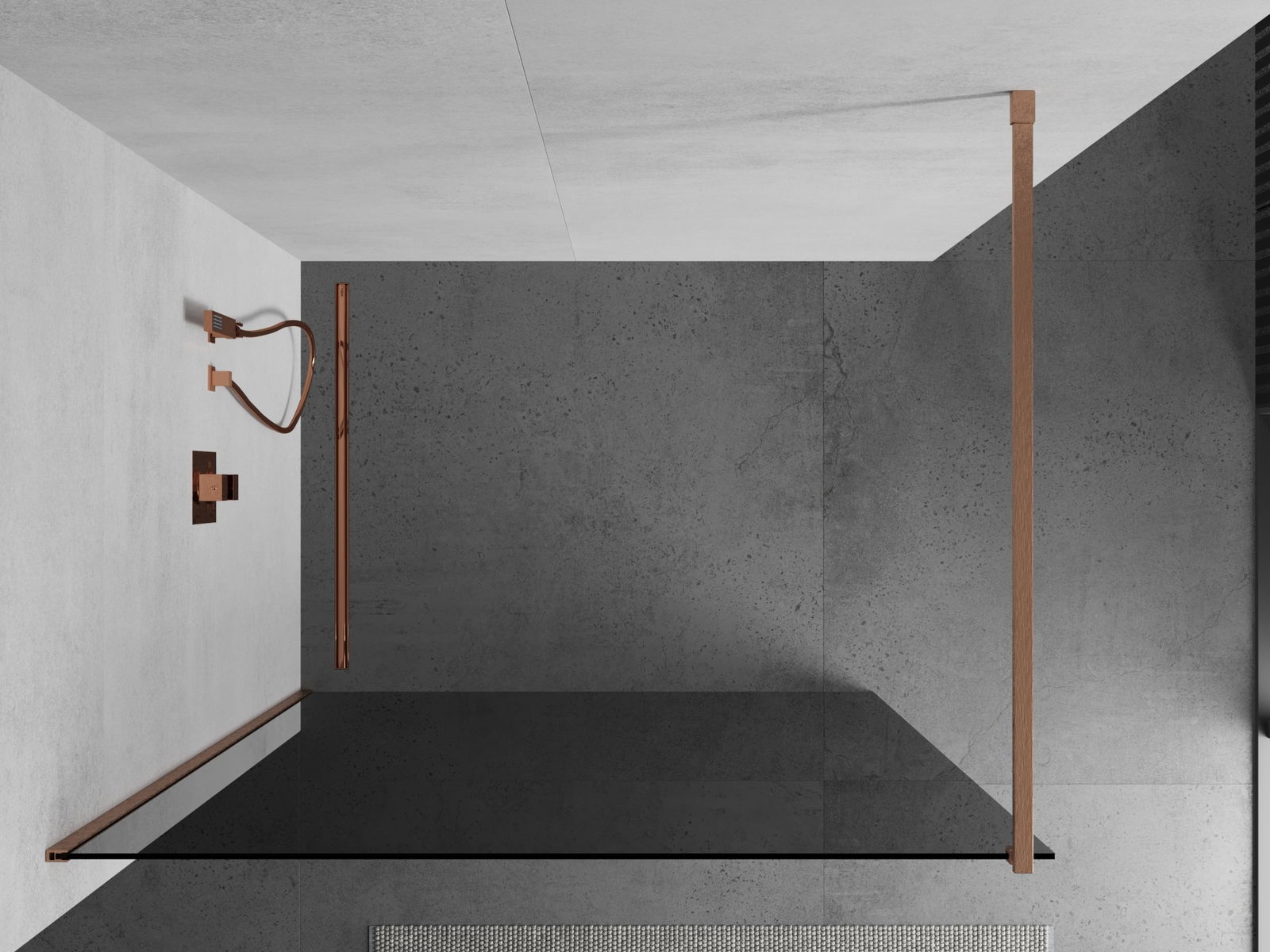 Mexen Kioto Sprchová stena Walk-in 100 x 200 cm, grafit 8 mm, brúsená meď - 800-100-101-65-40